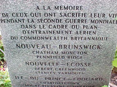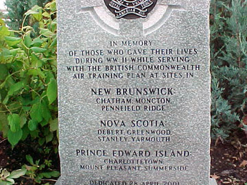 Ce mémorial est dédié à ceux qui sont morts dans le cadre du Programme d’entraînement aérien du Commonwealth au Nouveau-Brunswick, en Nouvelle-Écosse et à l’Île-du-Prince-Édouard. Il a été érigé en 2001 par l’AFAC et le Musée d’aviation militaire de Greenwood.