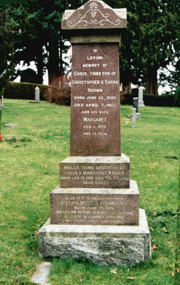 Ce mémorial dédié au Capt avn R.L. Brown a été érigé par la famille Brown. Il mesure huit pieds de haut et est posé sur une base de granit de trois pieds sur trois.