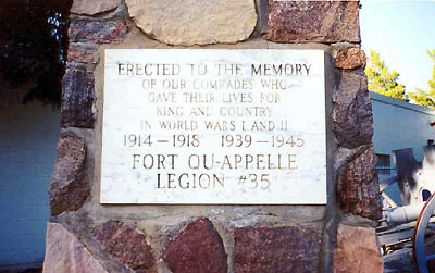 Ce mémorial, incluant dans sa composition un fusil de campagne de la Première Guerre mondiale, a été érigé par la filiale no 35 de la Légion royale canadienne en hommage aux camarades morts au combat durant les Première et Seconde Guerres mondiales.