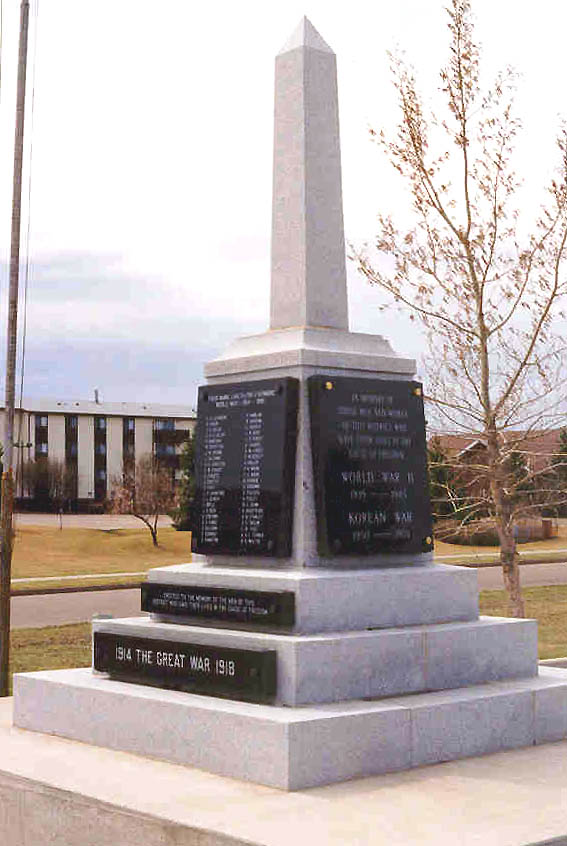 Érigé par la filiale locale de la Légion royale canadienne, ce mémorial est dédié aux citoyens de la communauté décédés durant les Premières et Seconde Guerres mondiales et la guerre de Corée.