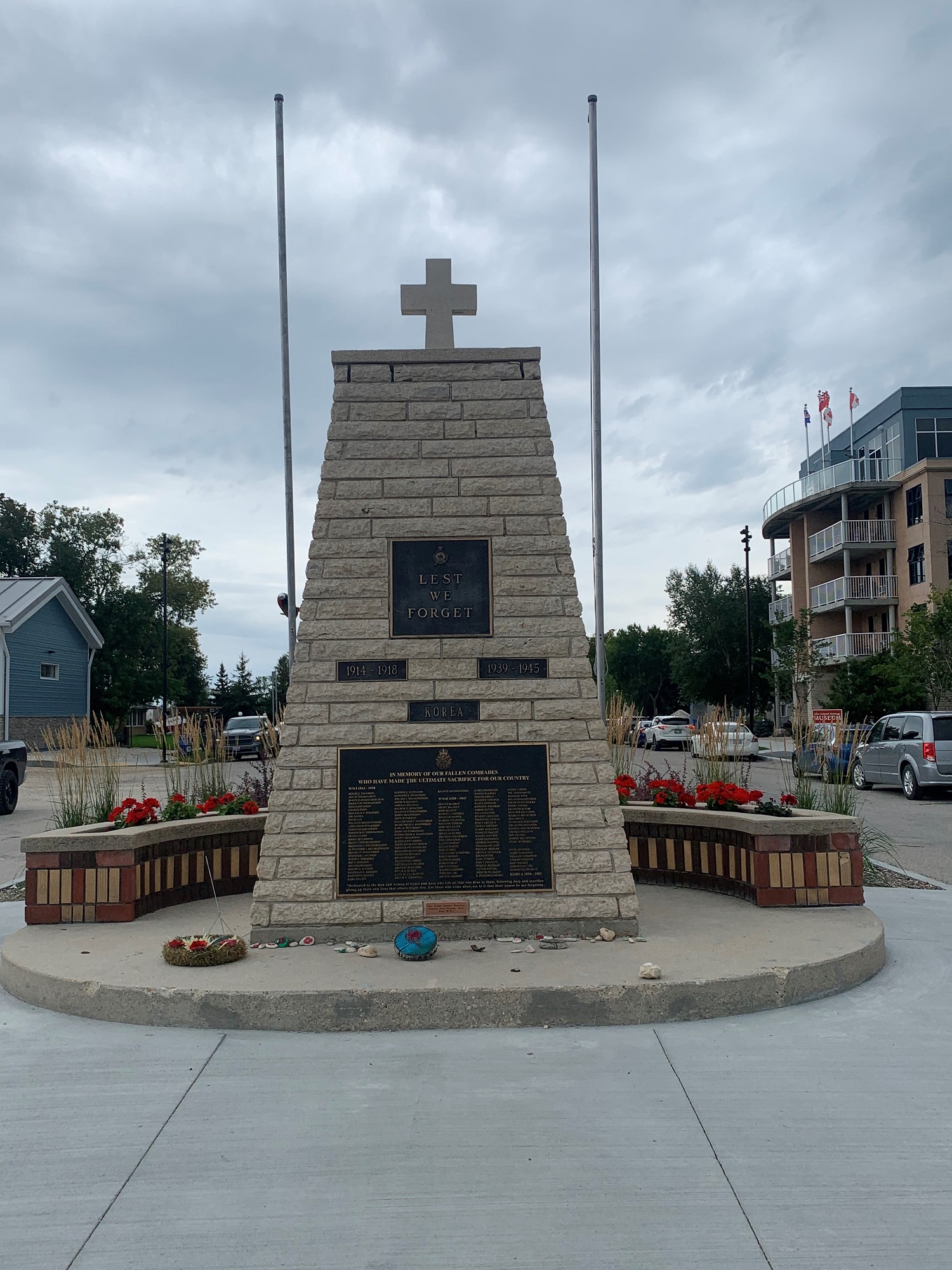 Ce mémorial a été érigé comme projet du Centenaire en 1967, par la Légion de Gimli. Il est dédié à ceux et celles qui ont péri durant les Première et Seconde Guerres mondiales et la guerre de Corée. La conception et la réalisation sont de Leonard Ciszewski, artiste local. Le dévoilement du tumulus a eu lieu lors de la cérémonie du Jour du Souvenir cette même année.
