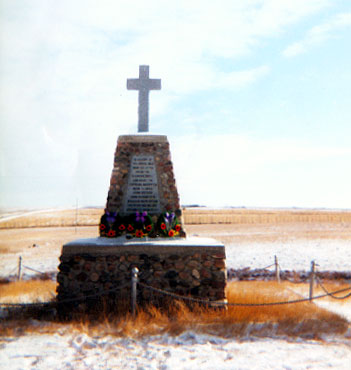 Ce mémorial a été érigé vers 1922; il est construit en pierres provenant de la campagne environnante et assemblées avec du ciment, et comprend également des plaques de marbre. Les noms des dix jeunes hommes des divisions 1 à 4 qui ont fait l’ultime sacrifice pendant la Première Guerre mondiale sont inscrits du côté est, tandis que ceux des cinq hommes qui ont perdu la vie pendant la Seconde Guerre mondiale sont énumérés du côté ouest. Le mémorial a été érigé à l’initiative d’anciens combattants de la Première Guerre mondiale, sous la direction de Jack Harrington et de J.B. Stohr. Des services commémoratifs y ont lieu le 11 novembre de chaque année depuis sa construction. Les premières années, il s’agissait d’une cérémonie militaire complète au cours de laquelle M. George Currell jouait « Taps » et « Reveille » à la trompette. Le service s’est cependant transformé avec le temps en cérémonie de prière et de dépôt de couronnes. De nos jours, l’assistance regarde le service diffusé par la CBC et dépose des couronnes au nom de la communauté, du village et du conseil des loisirs. Même si la communauté n’est pas nombreuse, au moins 20 personnes assistent toujours à cette cérémonie.