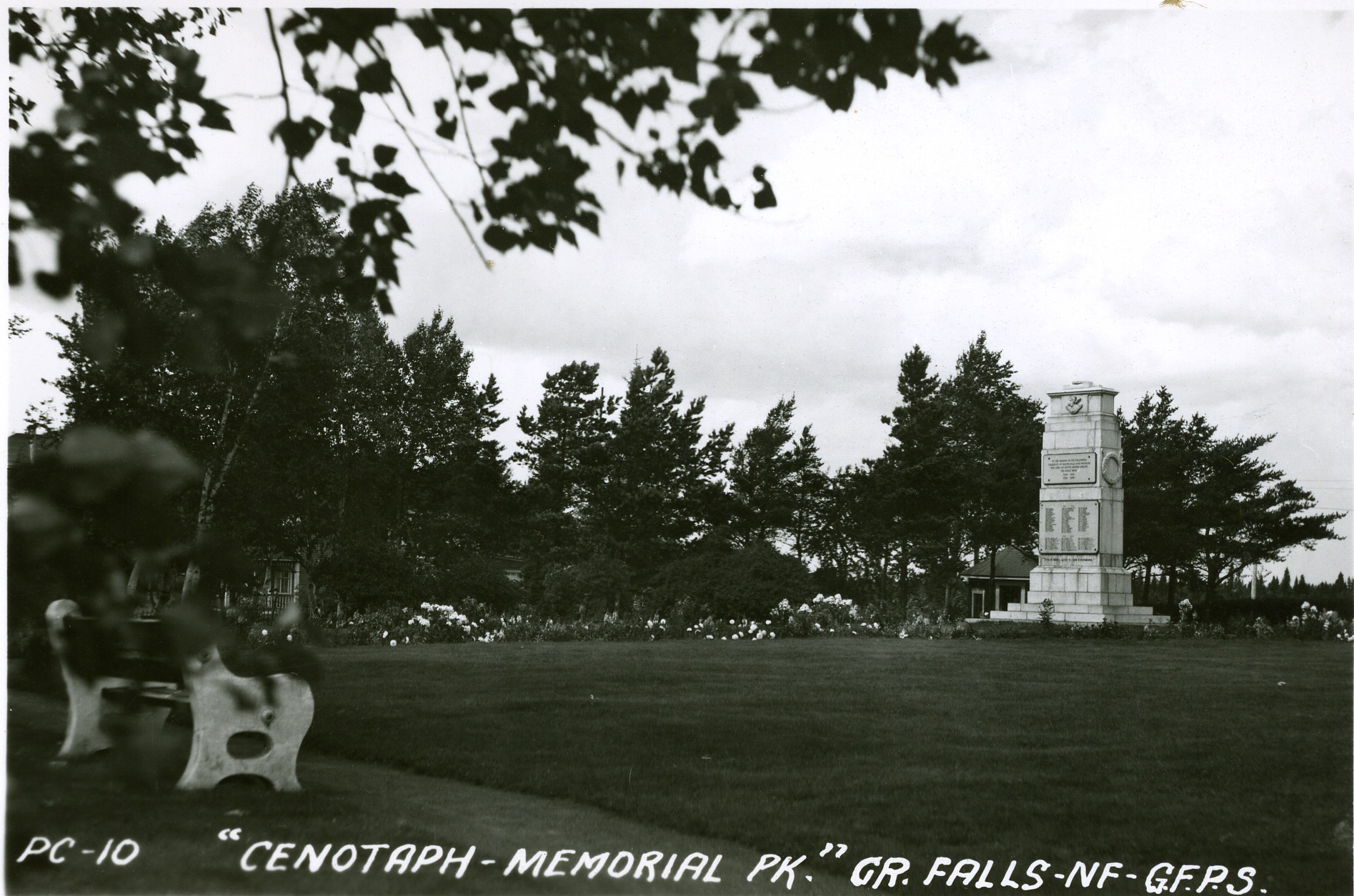 À ses débuts, la Great War Veterans Association organisait des cérémonies commémoratives sur les lieux des monuments temporaires érigés pour chaque service. Un site permanent de commémoration était nécessaire et des fonds de 8000 $ ont été réunis par les habitants de Grand Falls avec l’aide de l’Anglo-Newfoundland Development Company. Un mémorial a été conçu pour reproduire le cénotaphe de Whitehall, à Londres, afin de rendre hommage à ceux qui ont perdu la vie pendant la Première Guerre mondiale.