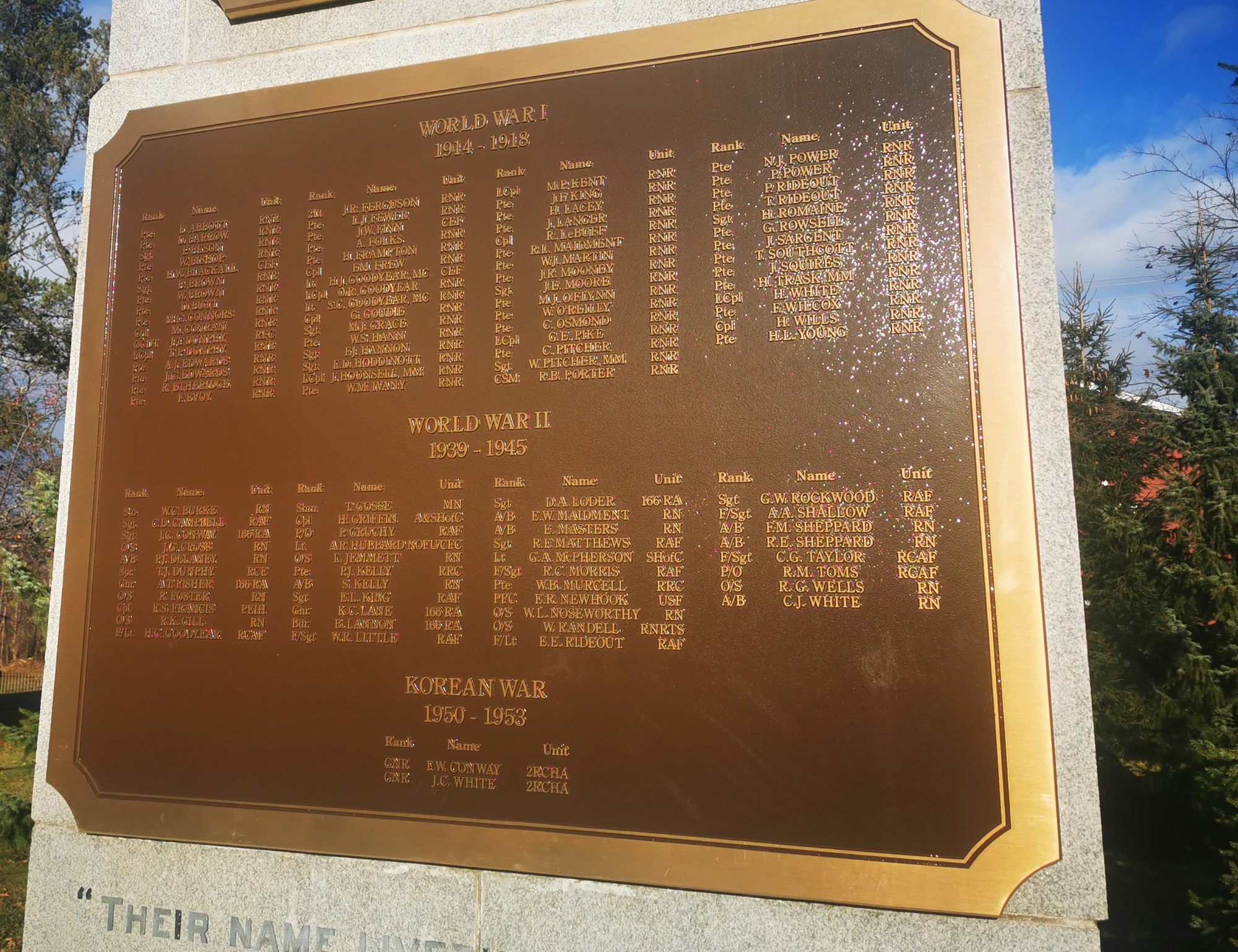 Le cénotaphe a été mis à jour pour inclure les soldats qui ont perdu la vie pendant la Seconde Guerre mondiale. Les inscriptions sur la pierre du cénotaphe ont été remplacées par des plaques en laiton en 1948. En 1966, les noms des militaires de la guerre de Corée ont été ajoutés.