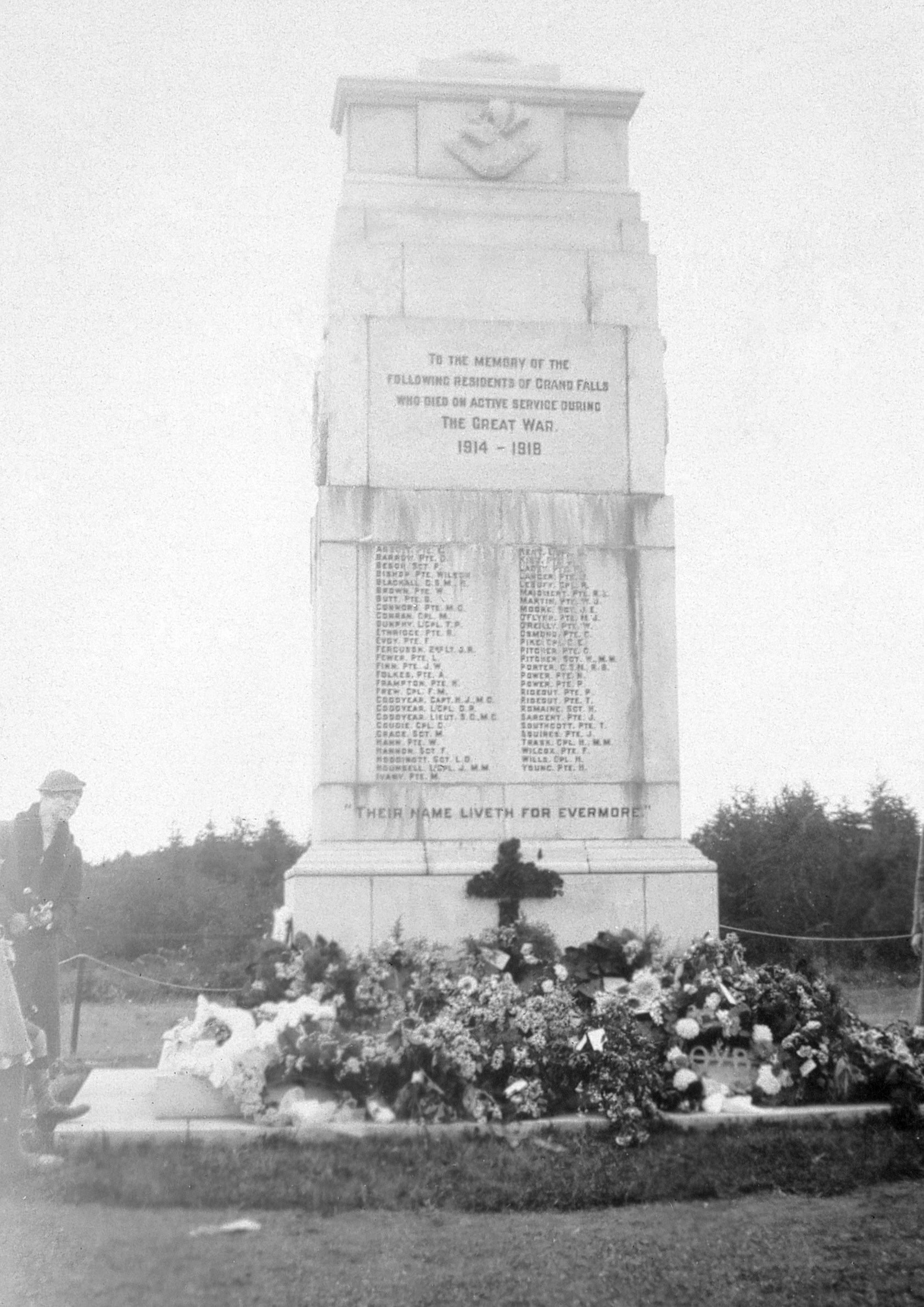 Le dévoilement et l’inauguration du cénotaphe ont eu lieu le dimanche 23 juillet 1922, sous la direction du gouverneur Harris. Le cénotaphe était situé à la périphérie de la ville, sur la Station Road, qui deviendra plus tard la rue Lincoln, dans la zone connue sous le nom de Memorial Grounds. L’école Grand Falls Academy a été construite directement derrière le cénotaphe en 1935.