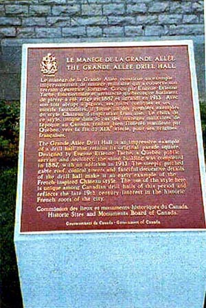 Érigé en 1991 par la Commission des lieux et monuments historiques du Canada, ce mémorial souligne l’emplacement du manège de la Grande-Allée et son style unique.