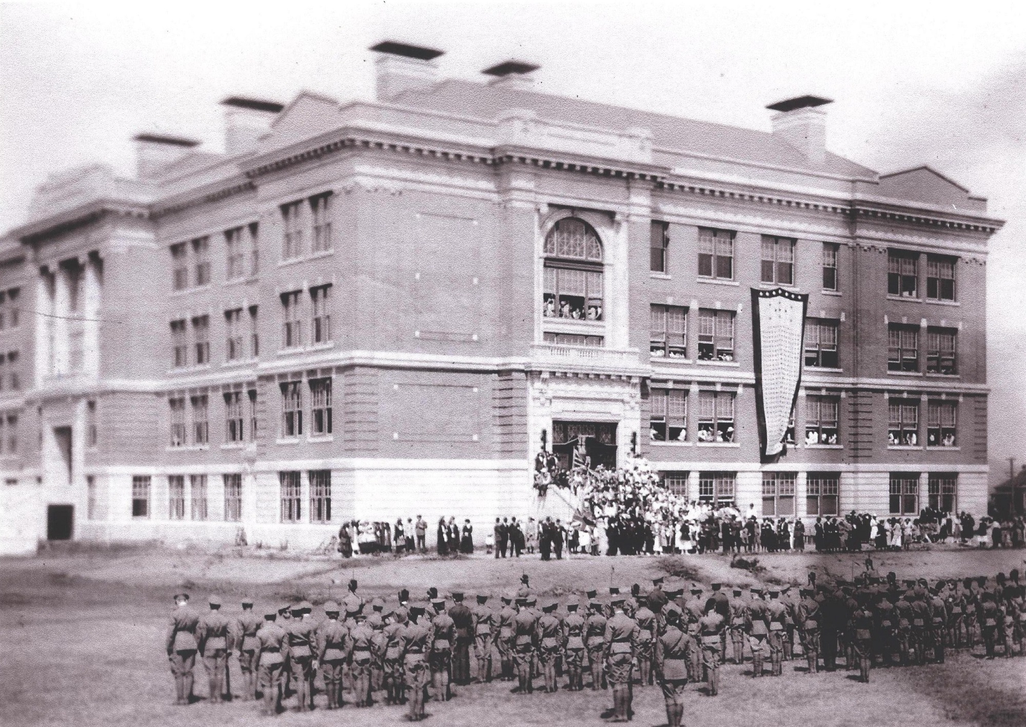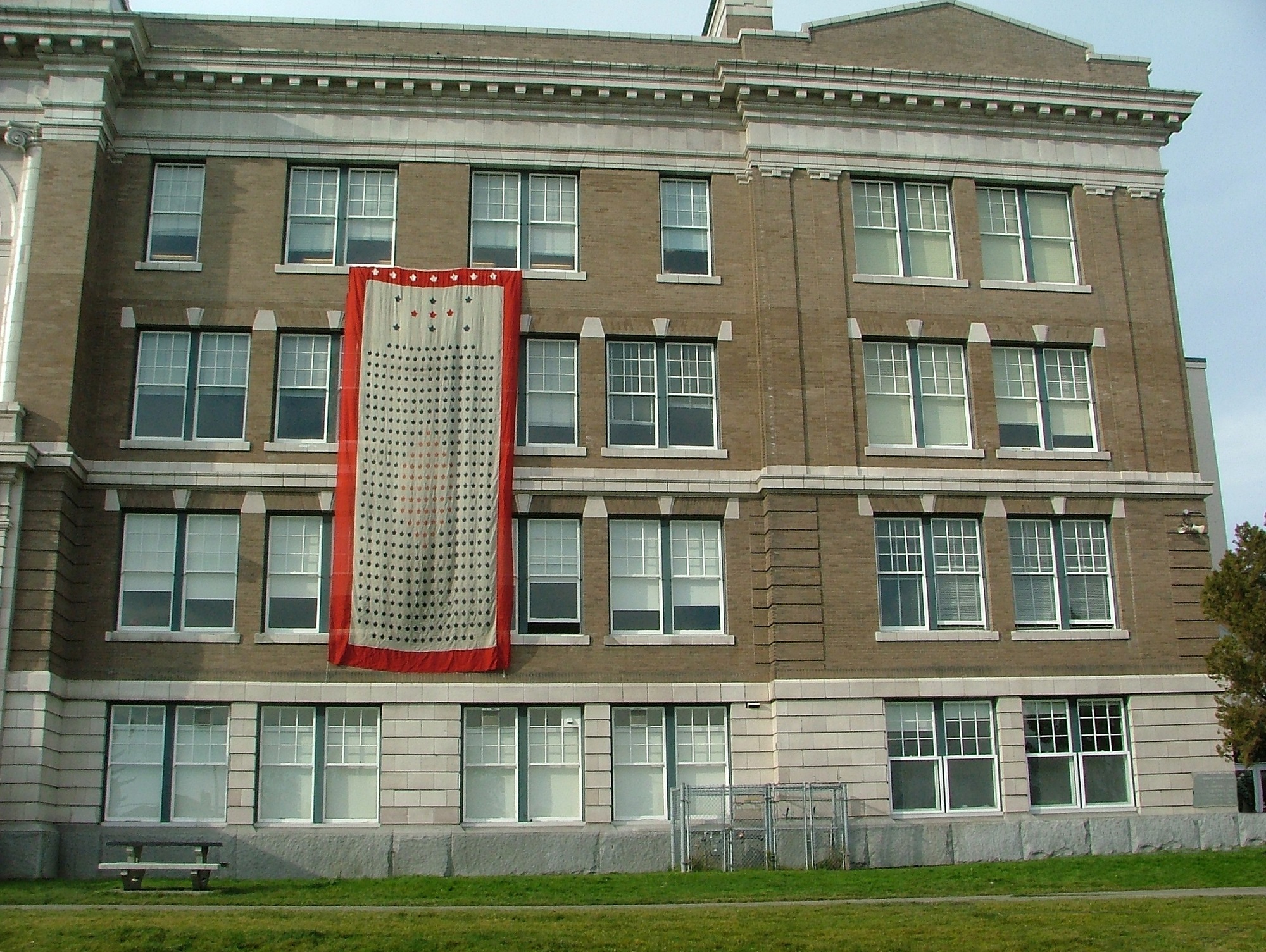 Chaque feuille d’érable a été cousue à la main sur la bannière. Le total des feuilles d’érable, chacune représentant une personne connue liée à l’école, est de 466. La bannière de la Grande Guerre continue d’être accrochée aux fenêtres du quatrième étage le jour du Souvenir.