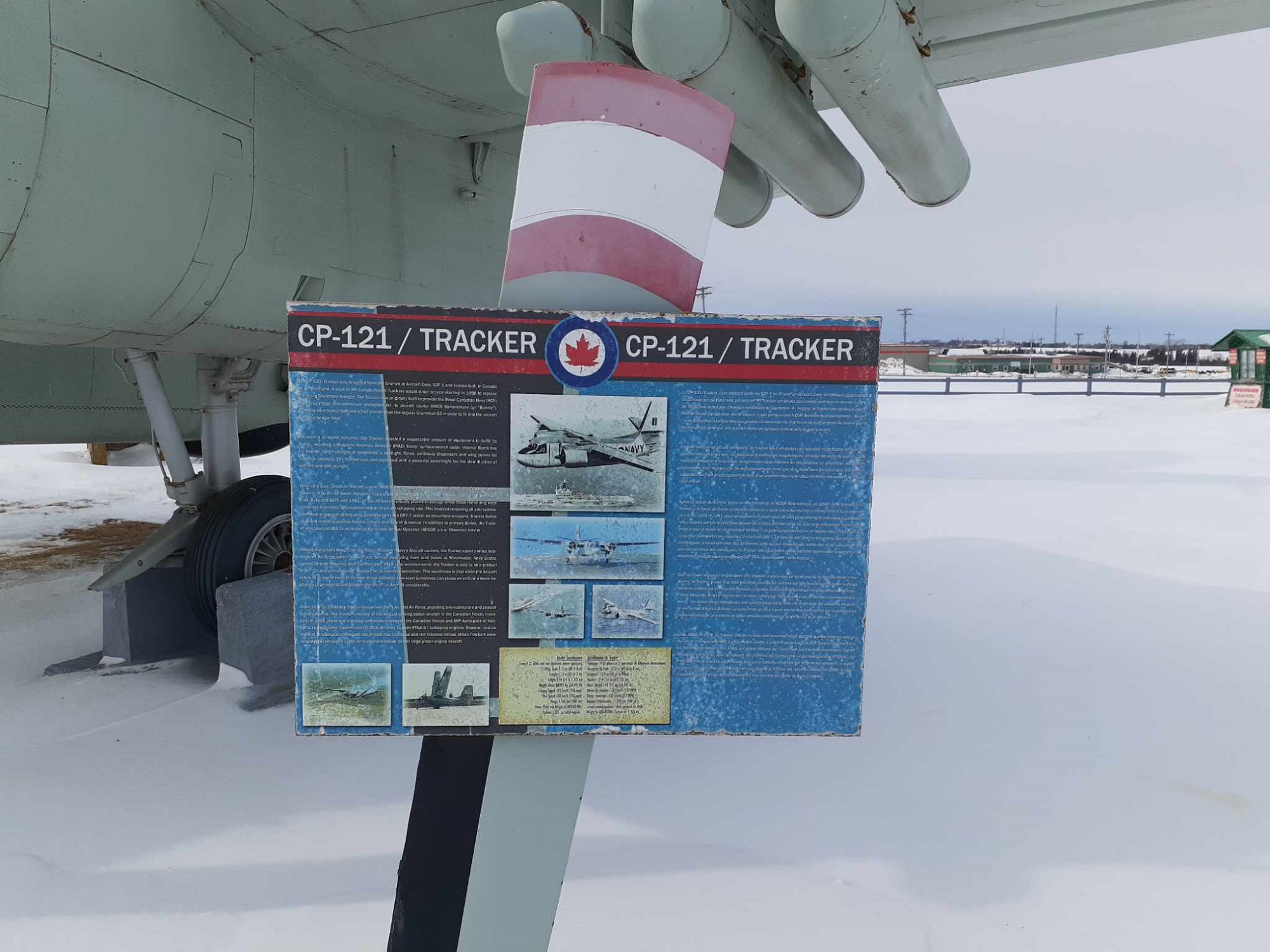 Le Tracker canadien 131 était le 30e construit par De Havilland à la fin des années 1950 et portait le numéro de série 1531. En 1969, la force aérienne a repris les Tracker et ont réorienté l’appareil pour qu’il joue un rôle antinavire. Ils ont renommé l’avion « CP-121 » et le numéro de série 1531 a été changé pour le 12131. Cette modification a exigé la suppression de toute l’électronique anti-sous-marine et l’ajout de pylônes de voilure équipés de roquettes air-sol CRV-7. Les tâches courantes de l’appareil comprenaient des patrouilles antidrogues, des patrouilles de pêche ainsi que des opérations de recherche et de sauvetage. Le Tracker a également servi d’avion d’entraînement pour les opérateurs de détecteurs électroniques aéroportés (OP DEA) pendant son séjour avec le 880e Escadron de reconnaissance maritime (MR) à la BFC Summerside. En 1990, le Tracker 12131 a été retiré du service du MDN, et une demande a été faite au MDN pour que le Tracker soit ajouté à l’exposition d’avions Argus et Voodoo à la base.