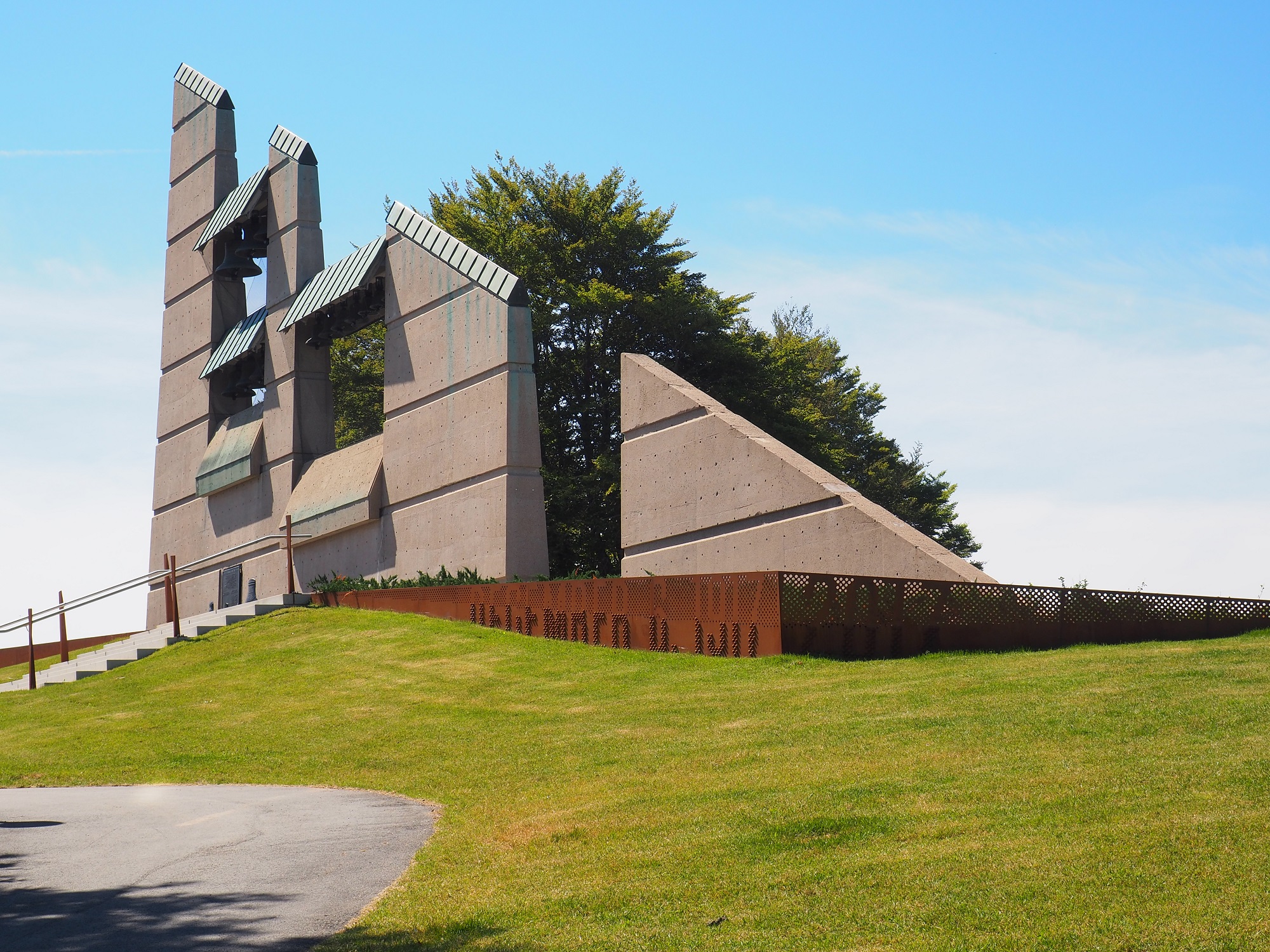 Un concours de conception de clocher a été organisé et la conception retenue a été celle de Keith Graham, du Core Design Group. La première pelletée de terre a été réalisée par Barbara le 1er juin 1984, et la cérémonie d’inauguration s’est tenue le 9 juin 1985. Barbara a de nouveau fait sonner le carillon lors de cette cérémonie. Comme les cloches avaient été branchées au réseau électrique, on pouvait les faire sonner à partir d’une pièce située au bas du clocher ou à partir d’un système à distance situé dans l’église unie de la rue Kaye. En 1990, quatre cloches offertes par M. Russell Isenor ont été ajoutées au clocher commémoratif.