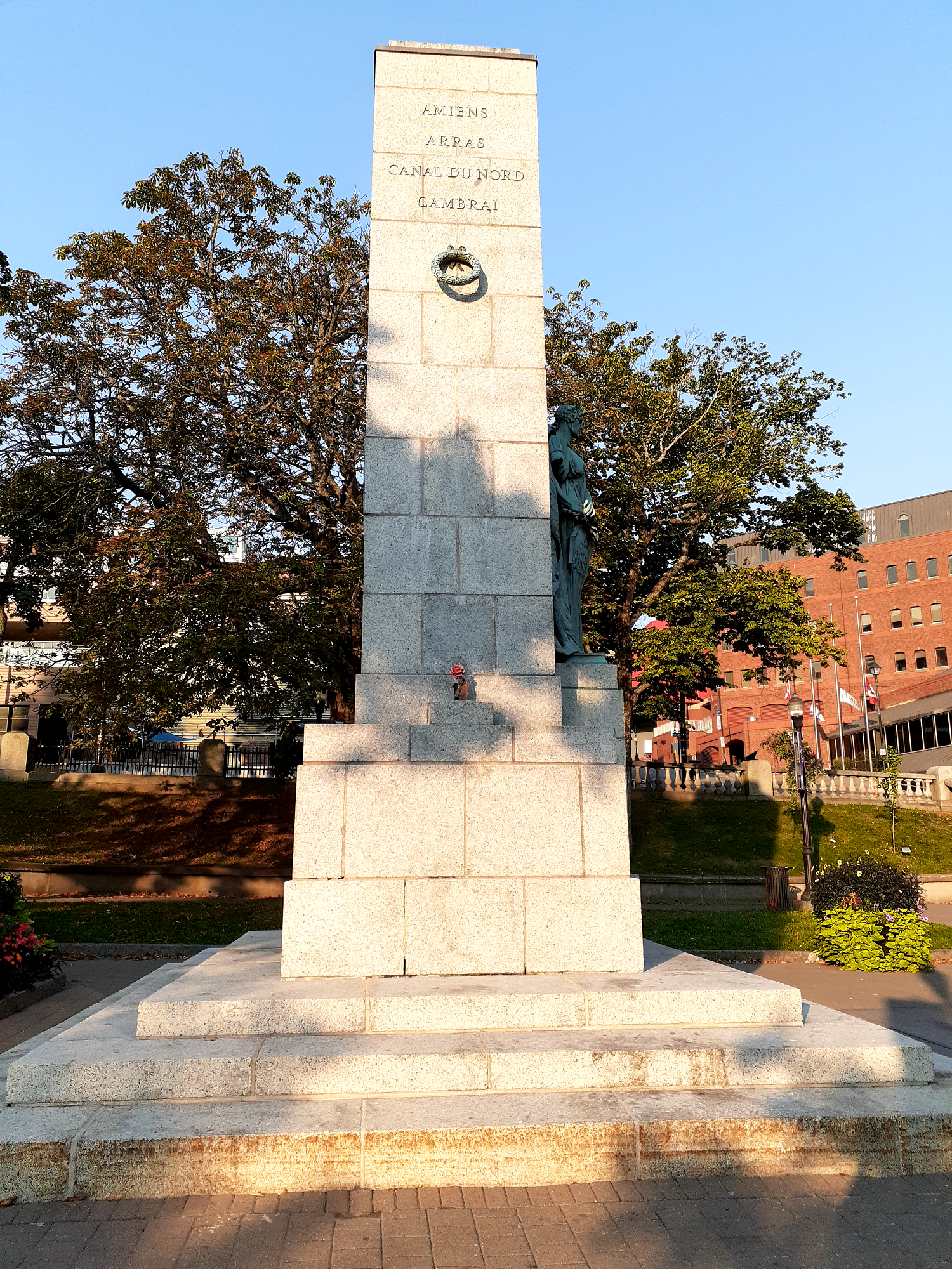 Le cénotaphe sur la place Grand Parade à Halifax a été dévoilé et inauguré le 1er juillet 1929 par l’ancien premier ministre du Canada, Robert Borden. Il commémore les 1360 hommes et femmes de Halifax qui sont morts pendant la Grande Guerre. Des milliers de personnes ont longé les rails autour de la place Grand Parade et se sont entassées dans les rues avoisinantes, montant même sur les toits pour trouver de meilleurs points d’observation. À 11 heures moins deux, un seul coup de canon a retenti depuis la colline de la Citadelle, suivi de deux minutes de silence respectueux. Le discours a été prononcé par James Layton Ralston, alors ministre de la Défense nationale. Il a commandé le 85e bataillon, connu sous le nom de Nova Scotia Highlanders, pendant la guerre. Il était colonel dans les Forces armées canadiennes alors qu’il était président du Rotary Club de Halifax en 1922.