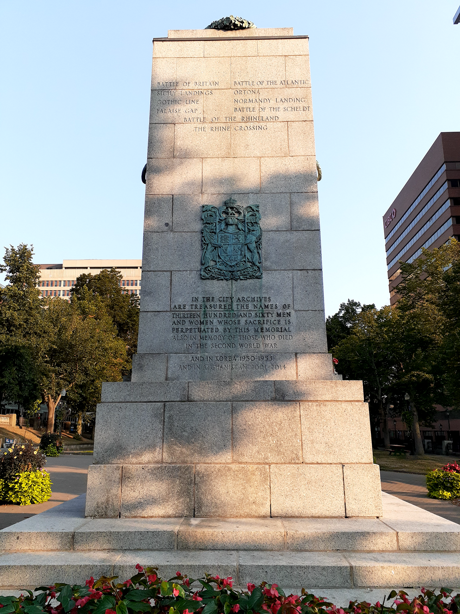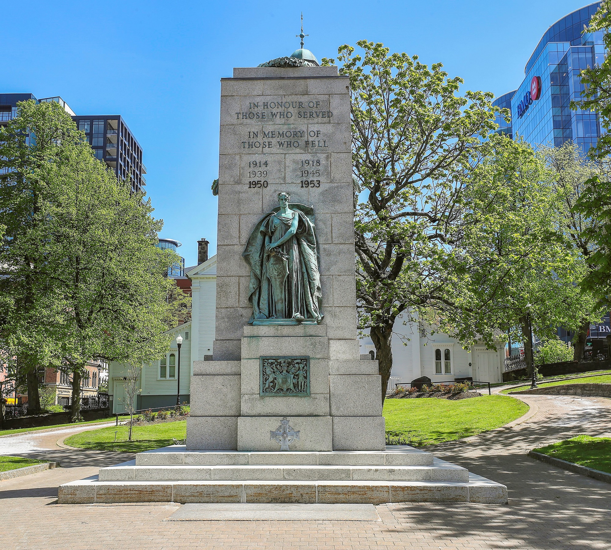 La place Grand Parade, parfois appelée à tort Parade Square, est une place de parade militaire historique datant de la fondation de Halifax en 1749. Grâce aux efforts du War Memorial Committee, le cénotaphe a été érigé à l’origine au milieu de la place Grand Parade pour rendre hommage aux soldats qui ont servi pendant la Première Guerre mondiale. Le comité était composé de membres de plusieurs sociétés de Halifax et d’échevins de la ville de Halifax. Le financement de la construction a été assuré par les dons des citoyens, les efforts de collecte de fonds du Comité et une subvention de la ville de Halifax.