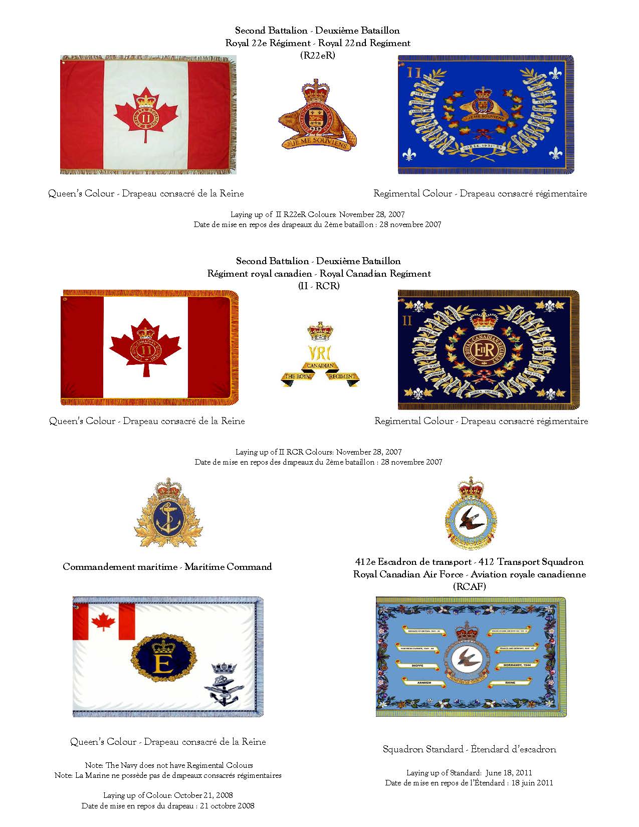 Deuxième Bataillon du Régiment royal canadien, date de mise en repos du Drapeau consacré de la Reine et du Drapeau consacré régimentaire : 28 novembre 2007.