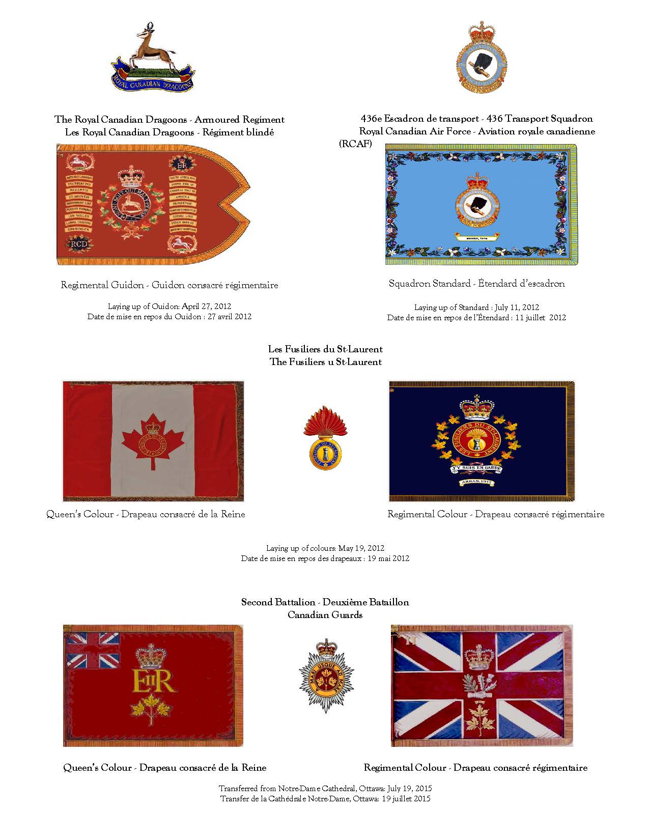 Les Fusiliers du St-Laurent, date de mise en repos du Drapeau consacré de la Reine et du Drapeau consacré régimentaire : 19 mai 2012.
