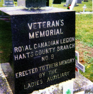 Base de granit surmontée d’une croix de granit, érigée à la mémoire des anciens combattants du comté de Hants par la section du comté de Hants (no 9) des Dames auxiliaires de la Légion royale canadienne.