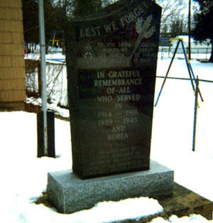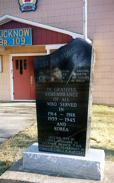 Le mémorial de Hantsport a été érigé en 1978 à la mémoire de tous les combattants des Première et Seconde Guerres mondiales. Il a été érigé par les Dames auxiliaires de la filiale de Lucknow (no 109) grâce à la générosité du camarade et de Mme L.K. Marsters. Lloyde Kirkpatrick Marsters était un ancien combattant de la Première Guerre mondiale. Sur les 730 habitants que comptait en 1914 le village de Hantsport, 120 jeunes hommes ont été envoyés à la guerre, et 21 d’entre eux ont fait l’ultime sacrifice. Au début de la Seconde Guerre mondiale, la population du village dépassait légèrement les 900 personnes. De ce nombre, 167 se sont enrôlés dans la Marine, la Marine marchande, l’Armée et l’Aviation; quatre y ont laissé leur vie. Ce mémorial est également dédié aux combattants de la guerre de Corée.