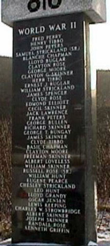 Ce mémorial a été érigé en juin 1999 en hommage aux anciens combattants des Première et Seconde Guerres mondiales. Il a été relocalisé au printemps 2000 et son entretien est maintenant la responsabilité du Club des Lions.
