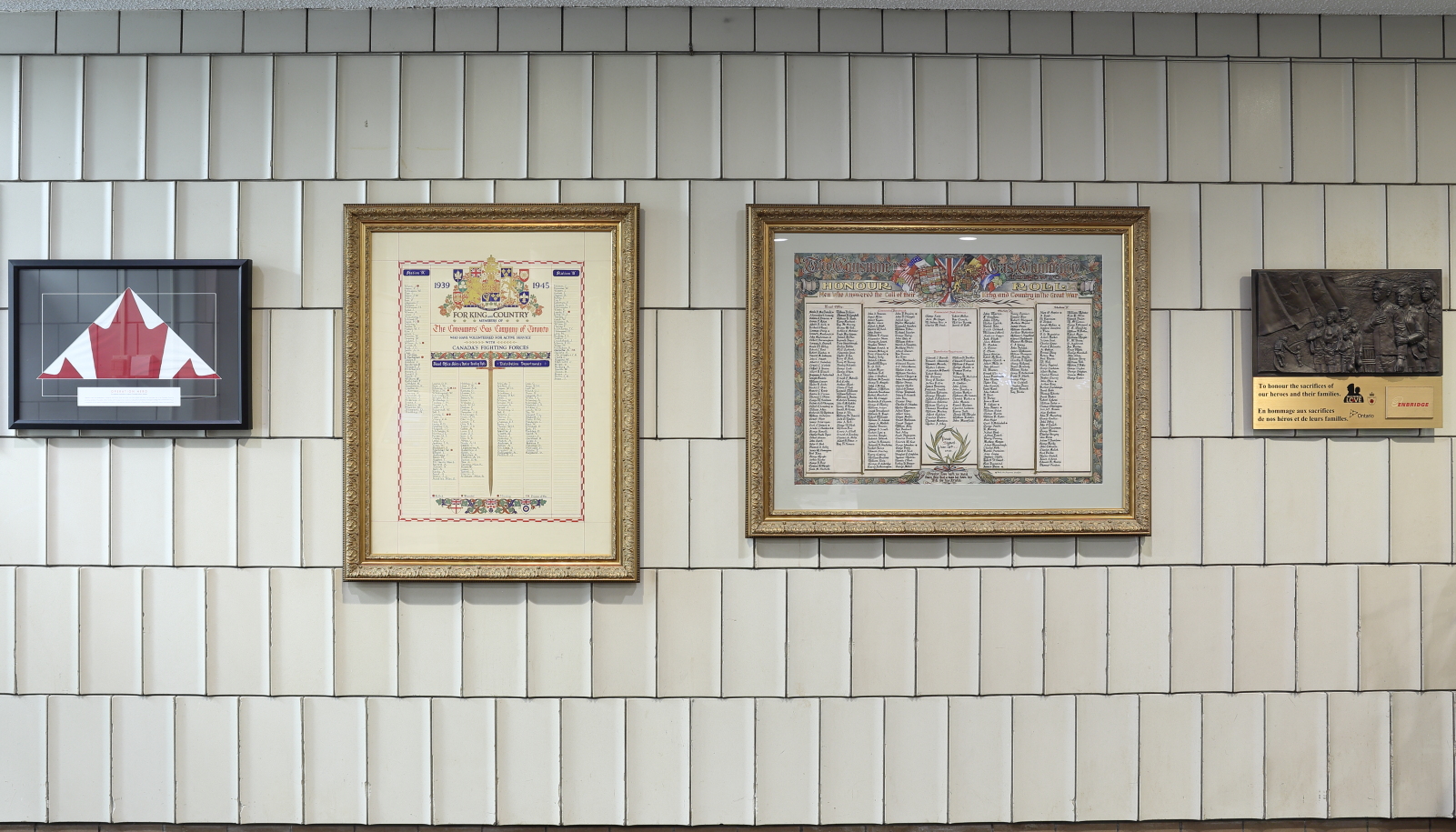 On August 18, 2011, the True Patriot Love Foundation in partnership with the Government of Ontario unveiled a bronze plaque to commemorate the sacrifices made by Canadian soldiers and their families, which will be placed at 26 bridges along the Highway of Heroes from Trenton to Toronto. The event was hosted by Enbridge Gas Distribution, one of the first major supporters of the program.