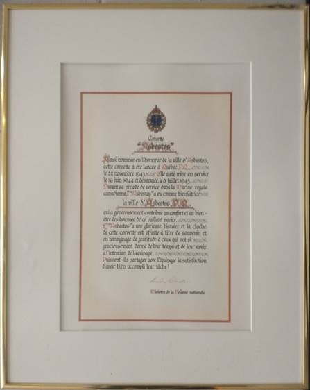 Ces certificats et images présentent des renseignements historiques sur l’ancien NCSM Asbestos. Ils ont été montés et encadrés par la ville d’Asbestos.