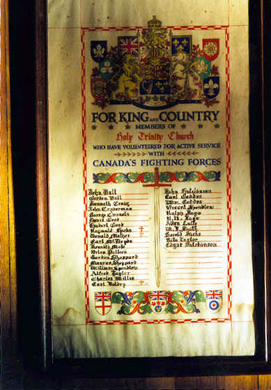 Ces parchemins sont dédiés aux membres de la paroisse Holy Trinity qui ont combattu pendant les Première et Seconde Guerres mondiales. Ils ont été érigés par la paroisse.