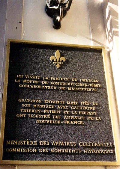 Érigé par le ministère des Affaires culturelles et la Commission des monuments historiques du Québec, ce mémorial marque l’endroit où Charles Le Moyne demeurait avec sa famille.