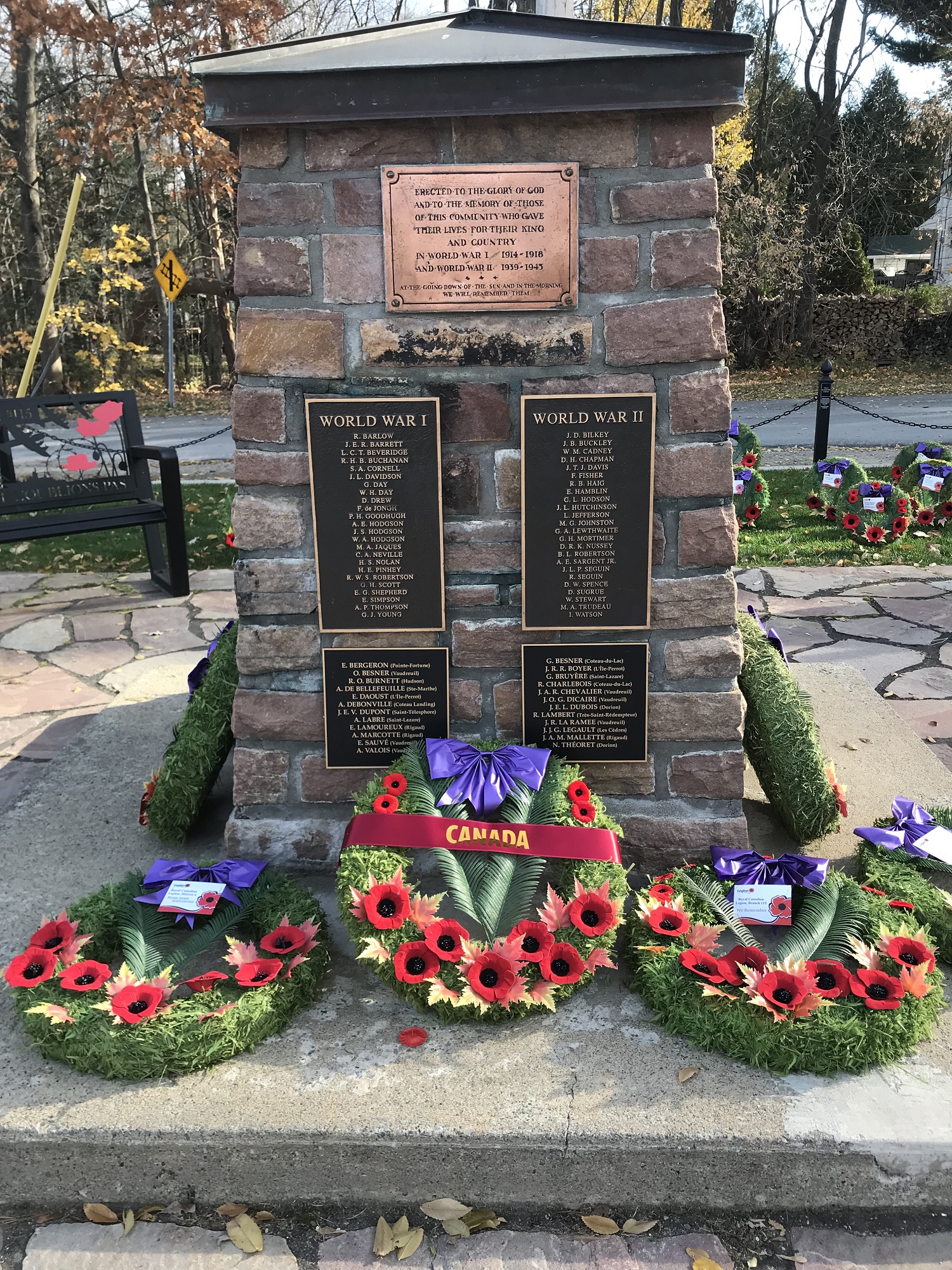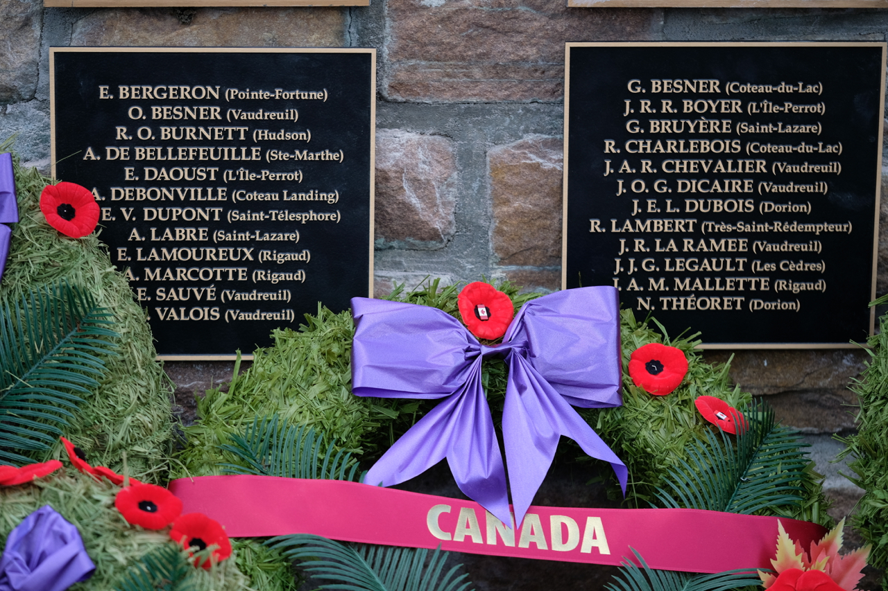 La filiale de la Légion royale canadienne à Hudson a dévoilé le cénotaphe rénové lors d’une cérémonie au cours de laquelle elle a également présenté le nouveau panneau de la Place Vimy et de nouvelles plaques commémoratives sur 19 poteaux en fer qui entourent le cénotaphe. En 2022, on comptait 25 poteaux en fer et plus de 100 plaques commémoratives.