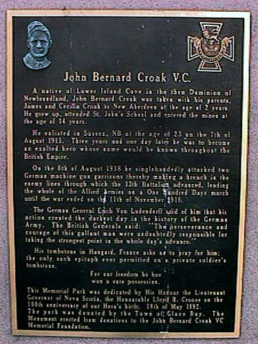 Ce mémorial est dédié à John Bernard Croak, V.C. Le parc a été donné par la Ville de Glace Bay, et le monument y a été érigé grâce à des dons recueillis par la John Bernard Croak V.C. Memorial Foundation.