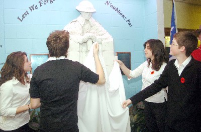 Le 10 avril 2007, les étudiants et le personnel de l’école secondaire John Paul I ont dévoilé l’œuvre des étudiants de l’école, une reproduction du monument de Saint-Julien, érigée en l’honneur des soldats canadiens qui sont morts pendant les premières attaques au chlore gazeux le 22 avril 1915, pendant la Première Guerre mondiale. Le monument rendra un hommage perpétuel aux soldats des Forces canadiennes, ceux d’hier, ceux d’aujourd’hui et ceux de demain. Le monument, une armature de bois recouverte de plâtre, est fixé à un mur de l’atrium de l’école. Il est haut de dix pieds et large de deux pieds. Son poids est de 150 livres. Il a fallu quatre mois pour le construire. À gauche du monument, les noms des principales batailles sont inscrits sur une colonne, de la crête de Vimy à l’Afghanistan. Le poème Au champ d’honneur est reproduit sur deux plaques suspendues au mur, à droite et à gauche du monument, en français et en anglais respectivement.