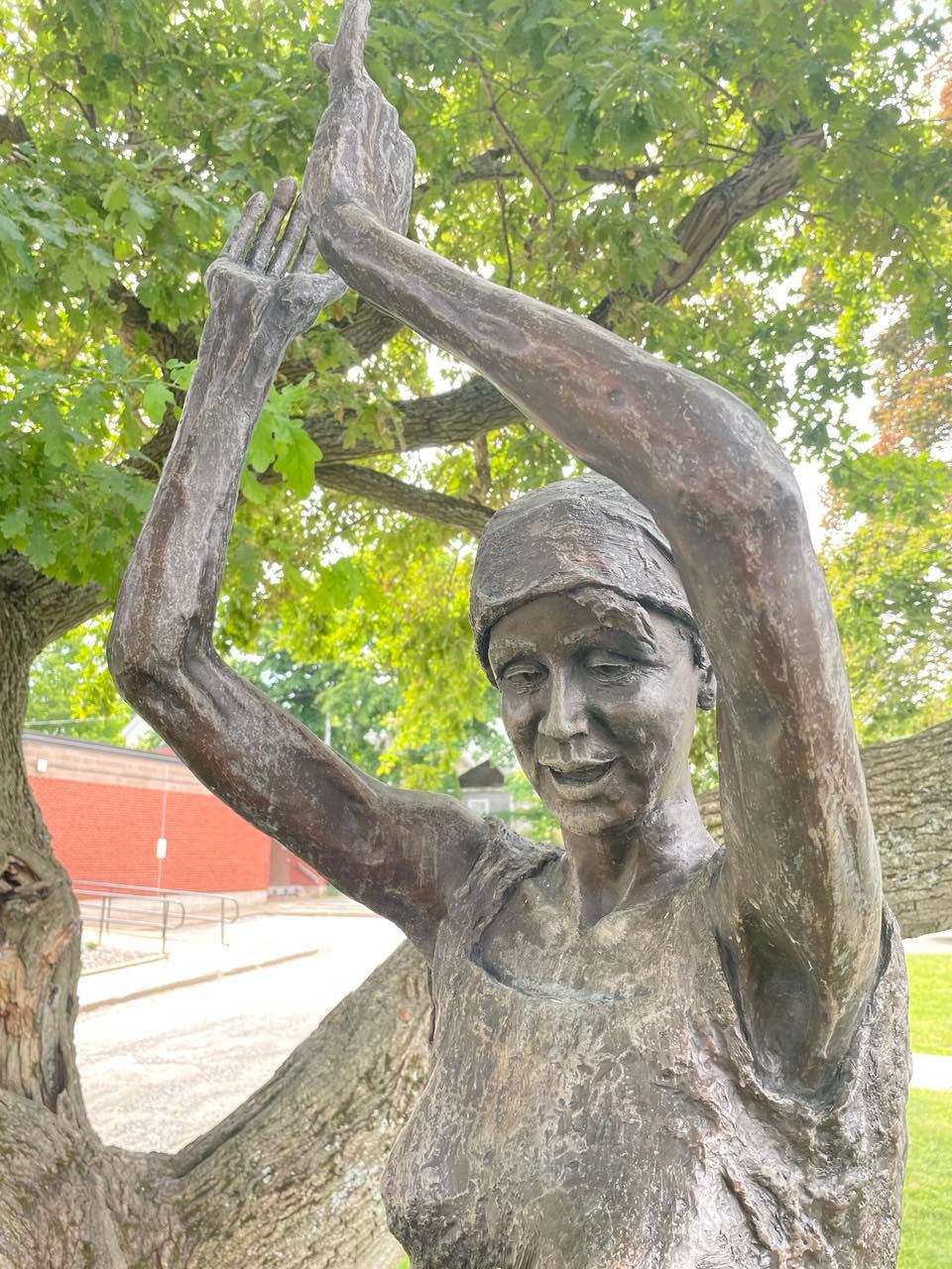 The sculpture of Mona Parsons — "The joy is almost too much to bear" showing her dancing on hearing of the liberation of Holland on May 5, 1945 — was created by Dutch-Canadian Nistal Prem de Boer, an artist living and working in the Annapolis Valley.