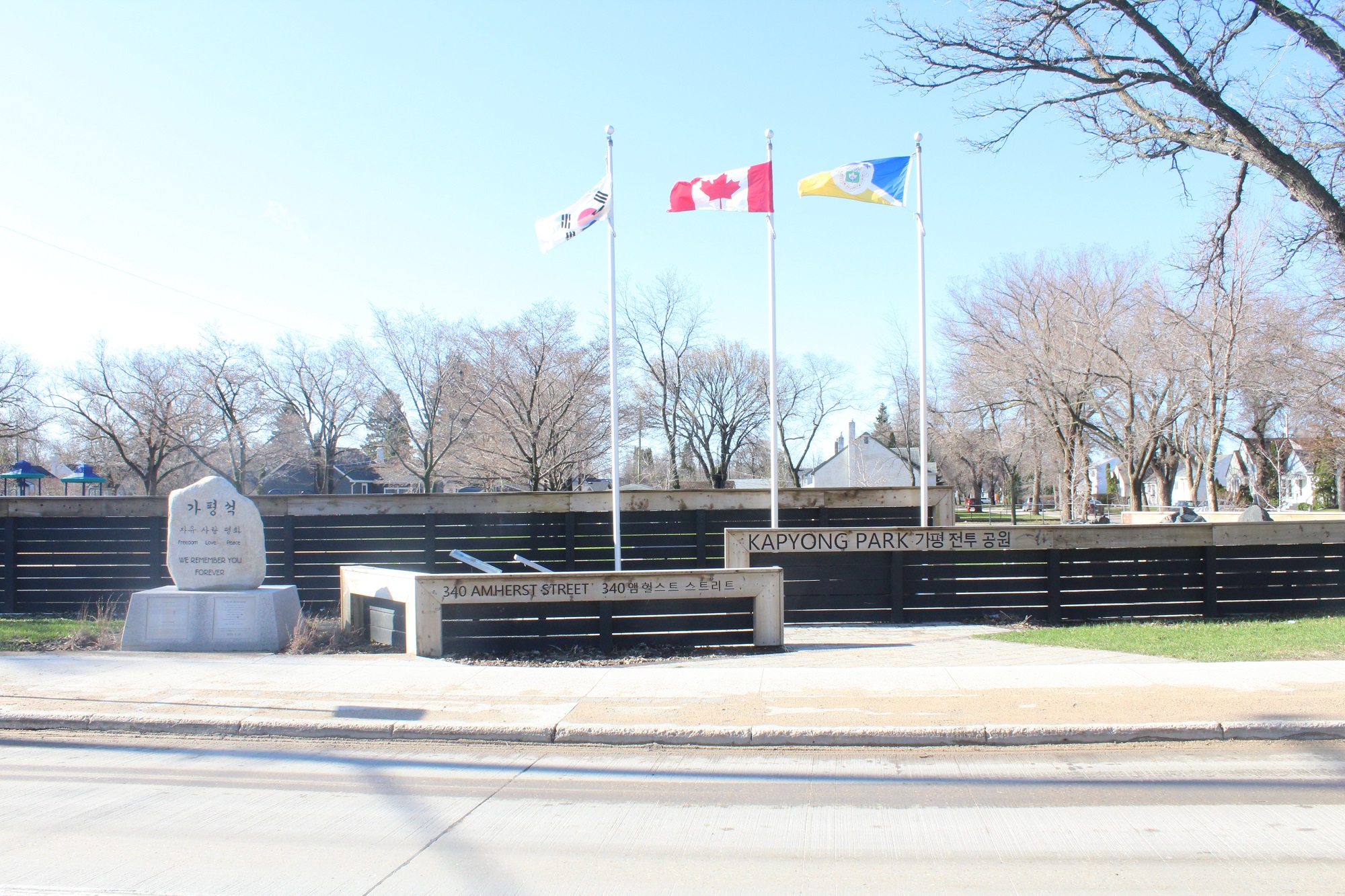 Le parc Kapyong est un lieu de réflexion sur une bataille clé de l’histoire militaire du Canada et a été inauguré en juin 2019. Ian Legge était l’architecte paysagiste du service d’urbanisme à l’origine du projet. Il a voulu rendre hommage aux dix soldats tombés au combat en installant dix blocs de granit dans le parc. Les blocs rocheux sont situés en face de 70 blocs blancs, qui servent également de bancs.