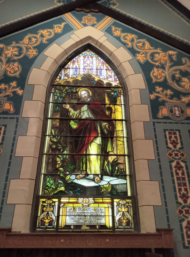 Le révérend T.H. Farr, qui a été nommé recteur de l’église anglicane de Kincardine de 1915 à 1928, a fait valoir auprès des paroissiens l’installation de vitraux dans l’église. La Girl’s Guild du Women’s Institute of Kincardine a acheté un vitrail commémoratif qui a été installé au-dessus de l’autel dans le sanctuaire au coût de 500 $, à la mémoire qui ont été tués en service actif pendant la Première Guerre mondiale.
