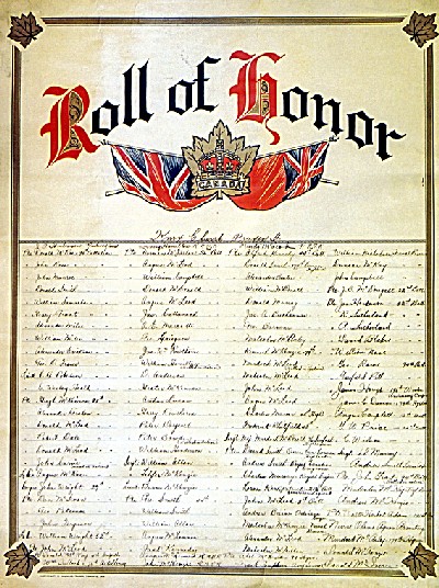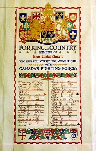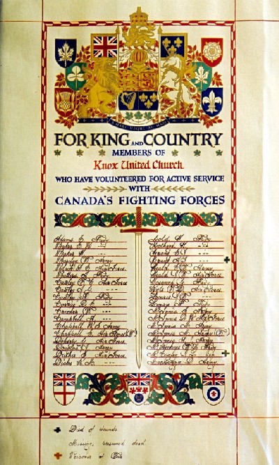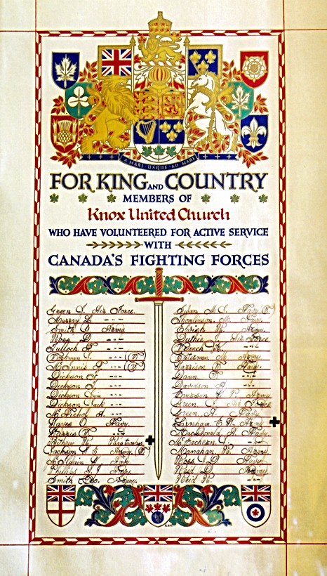 Ce tableau d’honneur présente le nom des membres de l’Église unie Knox qui se sont portés volontaires pour le service actif.