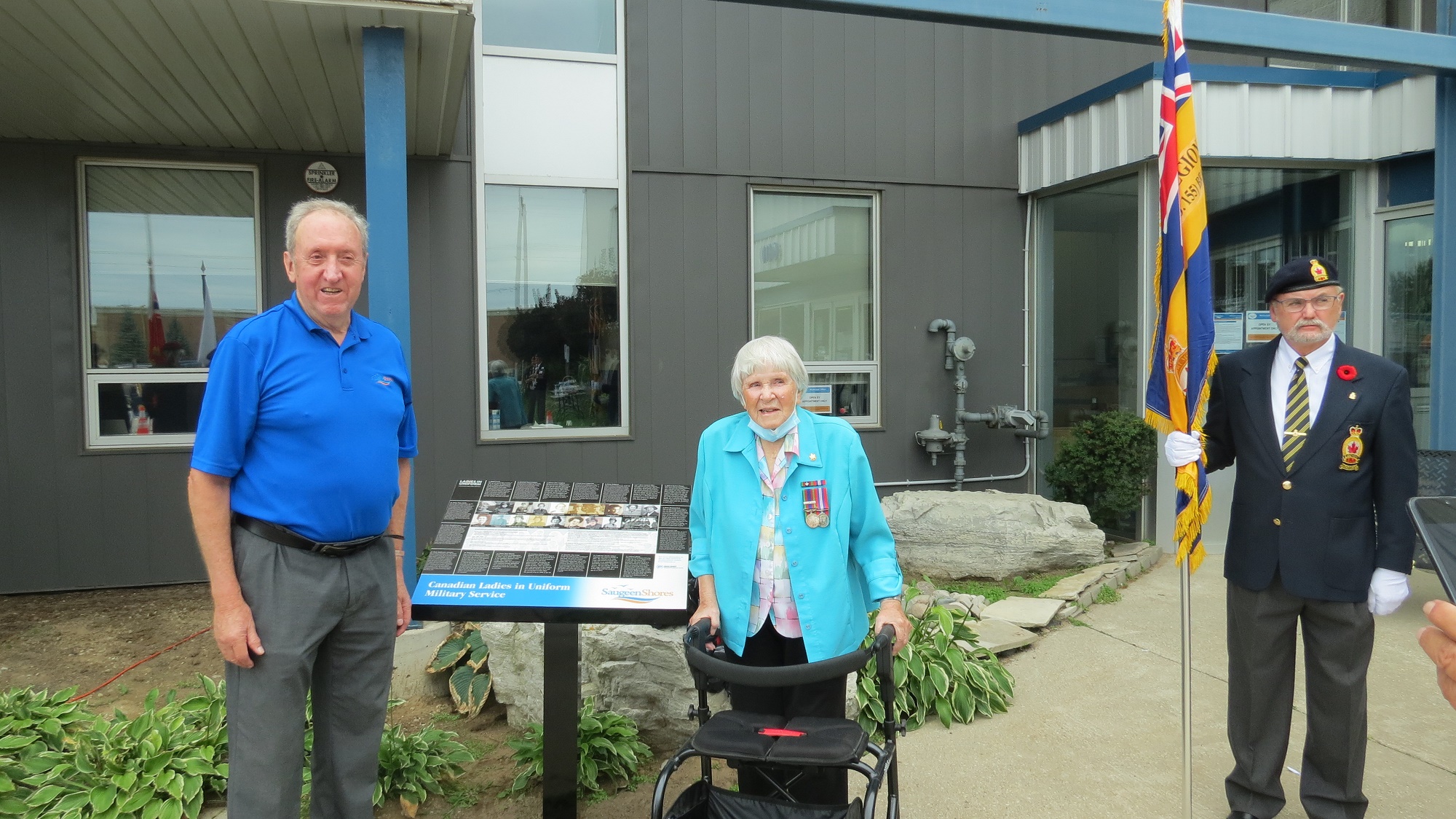 La plaque explicative des femmes en uniforme a été inaugurée le 4 septembre 2021, en présence d’une troupe de gardes du drapeau en marche de la filiale 340 (Southampton) de la Légion et de la filiale 155 (Port Elgin). Une foule d’environ 100 personnes y a assisté, y compris des membres de la famille et des descendants des femmes qui ont servi pendant les Première et Seconde Guerres mondiales. Bill Streeter a fait des recherches sur chacune des 19 femmes figurant sur la plaque.