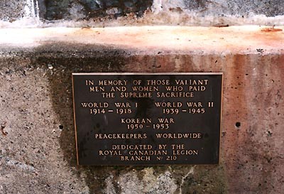 DEDICATED BY THE ROYAL CANADIAN LEGION BRANCH NO. 210