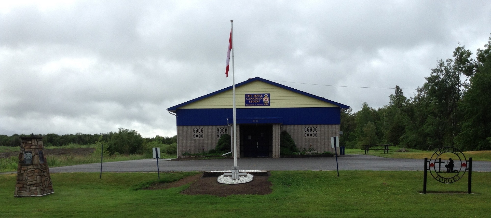La pelouse avant de la filiale no 625 de Richmond de la Légion royale canadienne se compose de trois éléments. Le cairn a été achevé en 2013 et inauguré dans le cadre des célébrations du 40e anniversaire. La croix « The Fallen… Not Forgotten » faisait à l’origine partie du parc commémoratif et du cénotaphe jusqu’à ce qu’elle soit brisée lors d’une tempête de neige en 1998. Elle a ensuite été déplacée sur la pelouse de la Légion de Richmond pour faire partie du jardin.