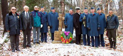 L’équipe de recherche et sauvetage au sol (RSS) de la BFC North Bay a immédiatement été déployée pour sécuriser le site et participer à son nettoyage. La croix a été fabriquée à partir de l’arbre contre lequel s’est écrasé l’hélicoptère accidenté. Elle a été érigée en 1991 par les membres de l’ancienne équipe de recherche et sauvetage au sol de la 22e escadre. Le propriétaire du terrain, M. Bill Baker, leur a permis d’y ériger ce mémorial.