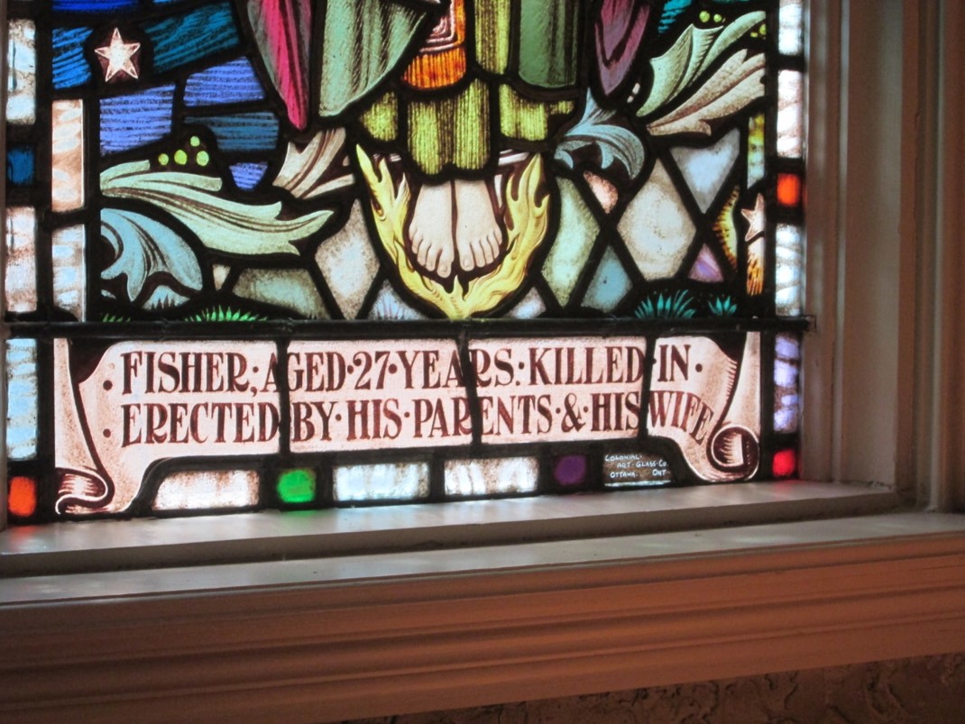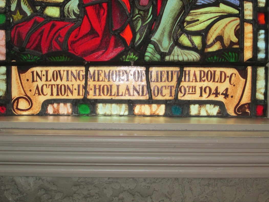 Ce mémorial, un vitrail, est dédié à la mémoire du lieutenant Harold C. Fisher, un membre de l’église qui a été tué le 9 octobre 1944 en Hollande.