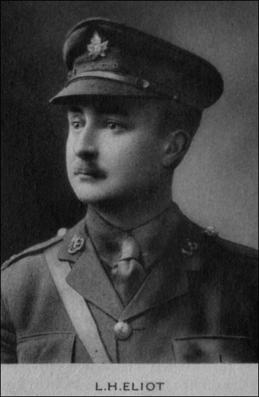 Lionel Hyman Eliot est né le 16 septembre 1887 à London, en Ontario. À la fin de ses études, il a obtenu un poste à la Banque de Montréal. Il s’est enrôlé en juin 1915 dans le 58e Bataillon; les dossiers indiquent toutefois qu’il était sur le contingent du 91e régiment des Highlanders canadiens. Son dossier de service indique également qu’il a préalablement servi dans le 9e Mississauga Horse. Il est resté avec le 58e Bataillon pendant plusieurs mois avant d’être « rayé de l’effectif » pour accepter le titre de lieutenant du 75e Bataillon.