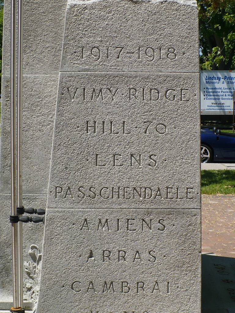 Sir Sam Hughes, ministre canadien de la Milice et de la Défense d’octobre 1911 à novembre 1916, a vu son nom figurer parmi les morts de la Première Guerre mondiale sur le cénotaphe de Lindsay, même s’il n’est mort qu’en 1921. Lindsay était sa ville natale, où il avait été instituteur et rédacteur en chef et propriétaire du journal.
