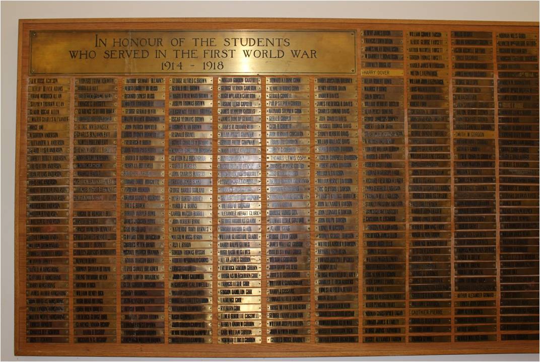 Ce monument commémoratif est dédié aux étudiants du Lisgar Collegiate Institute qui ont servi pendant la Première Guerre mondiale.