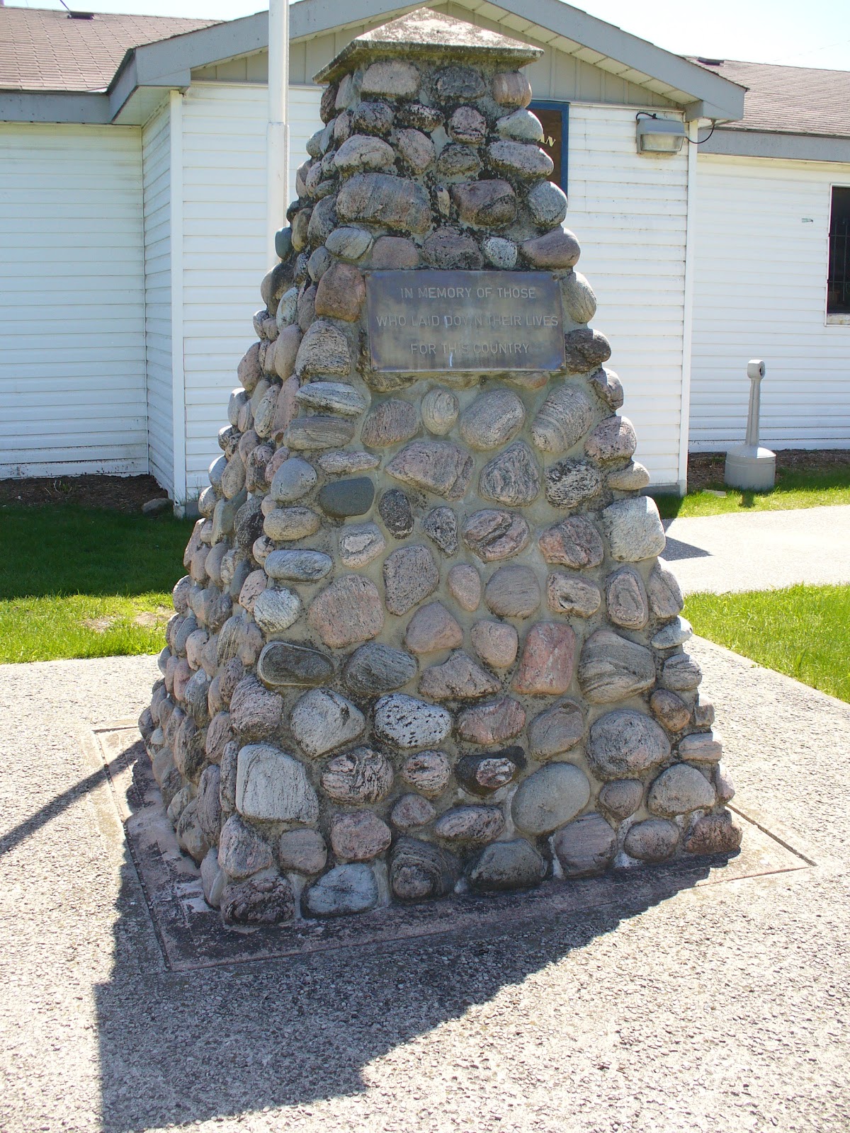 Ce monument a été érigé en août 1968 à la mémoire des anciens combattants canadiens, et en particulier de ceux de la région. Après la création de l’actuelle filiale de la Légion à Lisle, on a décidé d’honorer, par un mémorial ou une autre marque de reconnaissance, les anciens combattants et les soldats morts pour leur pays. Cette construction était particulièrement nécessaire pour les cérémonies commémoratives du 11 novembre et les autres services qui se tenaient à l’extérieur. Tant à la première filiale de la Légion (Railroad Station) que dans les premières années de la filiale actuelle, on utilisait une grande plate-forme carrée en bois pour la réception du salut et la relève de la garde au cours de la portion extérieure des services commémoratifs. Le sgt Vince Sulllivan, qui avait construit le cénotaphe du parc Worthington, à la base de Borden, a été invité en 1968 à construire un monument similaire pour la Légion de Lisle. Il a consenti à le réaliser gratuitement, se contentant de réclamer quelques personnes pour l’aider. Il avait toujours les formes du monument qu’il avait construit à Borden, ainsi que quelques sacs de ciment et le colorant nécessaire. C’était une bonne nouvelle pour la Légion et, après une semaine de travaux en soirée, le monument a été terminé le même été. À l’exception du sgt Sullivan, tous ceux qui ont participé à la construction du mémorial étaient membres de la Légion de Lisle. Le texte à inscrire sur la plaque de laiton est un des éléments qui ont soulevé le plus de controverse. Certains membres voulaient y faire inscrire « For King and Country » (Pour le Roi et la Patrie), d’autres préféraient « Commonwealth and Country » (Commonwealth et Patrie), tandis que d’autres encore jugeaient que les mots « British Empire » (Empire britannique) conviendraient mieux. Enfin, d’autres souhaitaient omettre toute allusion à la monarchie. Finalement, après deux réunions et un long débat houleux, les mots suivants ont été choisis : « IN MEMORY OF THOSE WHO LAID DOWN THEIR LIVES FOR THIS COUNTRY » (À LA MÉMOIRE DE CEUX QUI ONT DONNÉ LEUR VIE POUR LEUR PAYS) Voici les noms des membres de la Légion qui ont participé à la construction du mémorial, avec quelques renseignements biographiques à leur sujet : Tom Butler : Né et élevé dans la maison de pierre de la Forth Line, à Lisle, où il a vécu jusqu’à son déménagement à Alliston à l’automne 1996. Vince Sullivan : Retraité de l’armée; vit à Arthurette (Nouveau-Brunswick). Alec Begg : Décédé. Vivait dans la maison, au sud de Lisle, où habite aujourd’hui Elvis Jamieson. Sa fille, Barbara Adams, est membre de la Légion de Lisle, tout comme son mari, Gord, et ses filles, Debra Adams et Dawn Charpentier. Barb Adams habite à Spruce Grove (Alberta). Jim Lane : Décédé. Propriétaire et exploitant du restaurant de Lisle à la fin des années 1950 et au début des années 1960. Claude Patton : Décédé. Agriculteur à l’ouest de Lisle et facteur pour ce secteur pendant des années. Ses fils Bill et Don sont tous deux membres de la Légion de Lisle. Lors d’une assemblée générale, en octobre 1994, il a été décidé que le vieux cénotaphe avait besoin d’une cure de rajeunissement. Un entrepreneur a été embauché pour effectuer les travaux nécessaires. Il a refait la surface de la base sur laquelle repose le cénotaphe et recouvert la surface lisse du cénotaphe de pierres des champs colorées qui mettent encore mieux en évidence cet impressionnant monument. Les travaux ont été complétés le 31 août 1995.