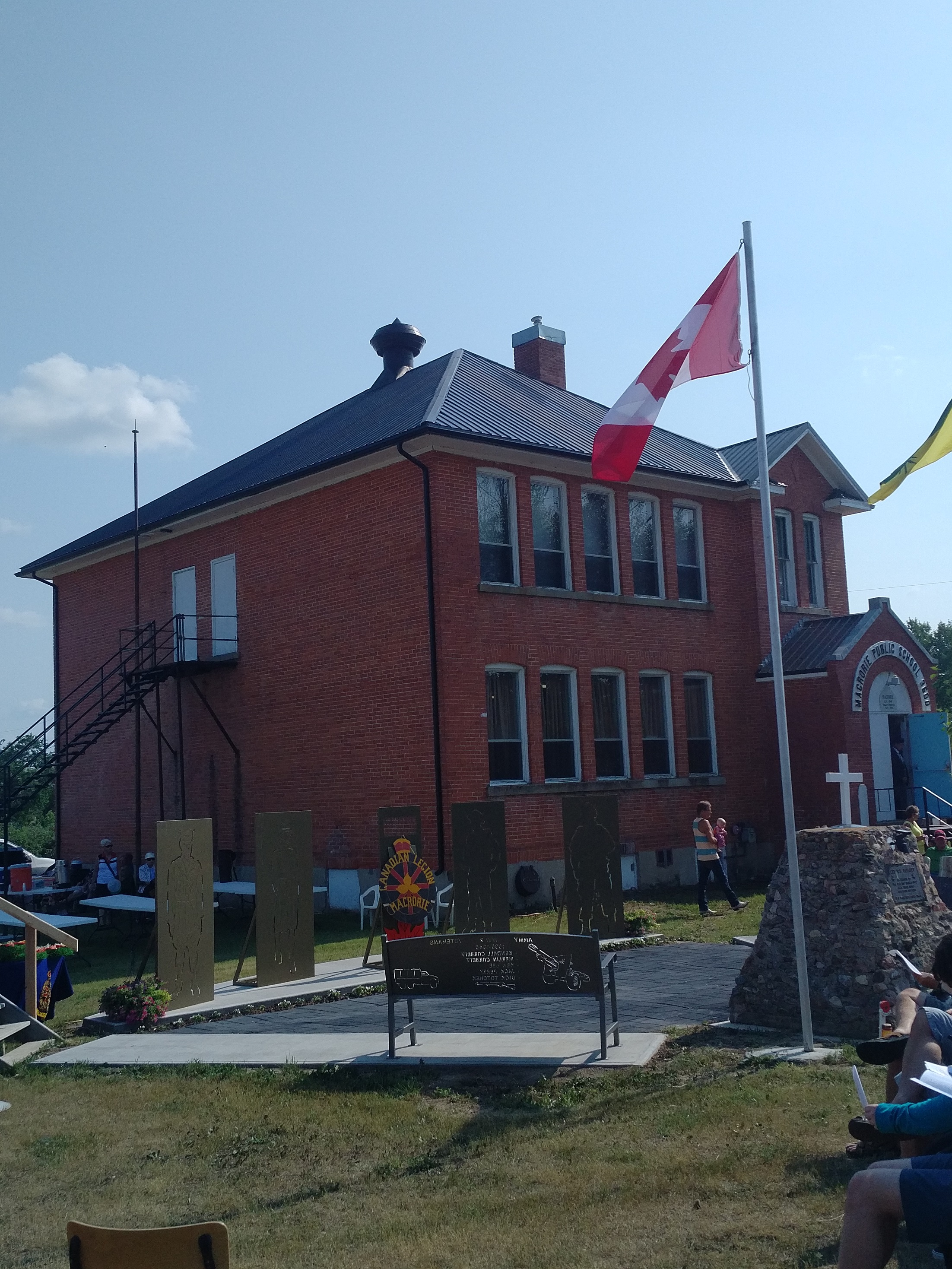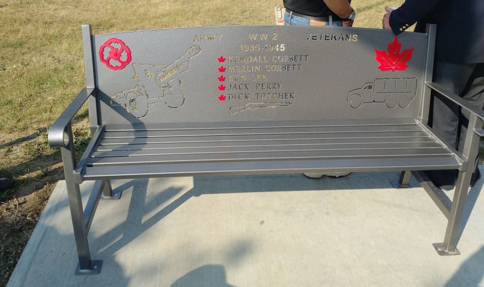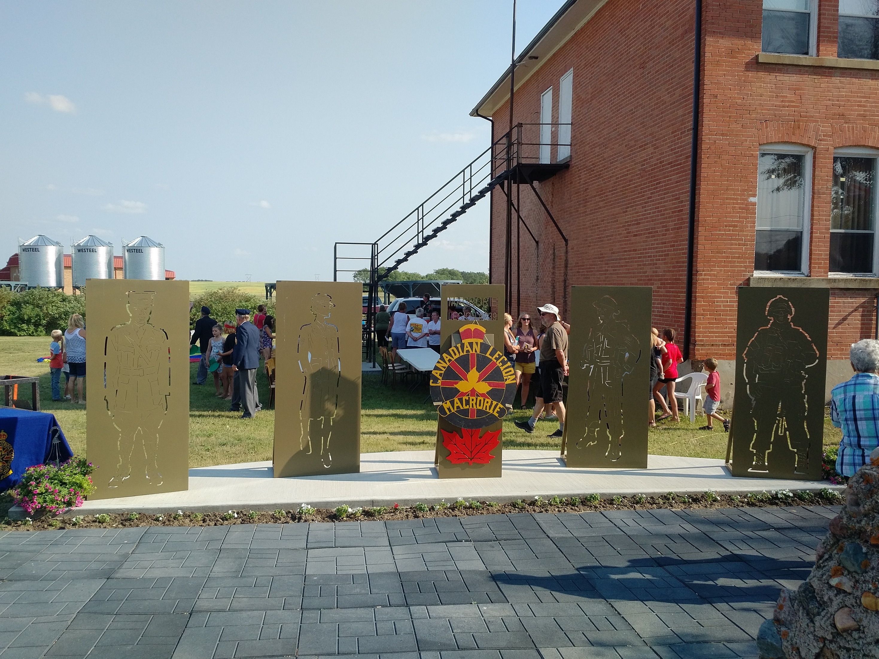 Le cénotaphe original était placé devant l’immeuble de la Légion, mais ce dernier a été vendu à un particulier. Nous avons décidé de le déplacer et de le réinstaller en face de l’école de Macrorie, qui célèbre cette année son 100e anniversaire. L’école, qui a été construite en 1917, est aujourd’hui un musée et un café-bar. La Ville a ajouté des silhouettes d’acier représentant un soldat de la Première Guerre mondiale, une auxiliaire de la Seconde Guerre mondiale, un soldat de la Seconde Guerre mondiale et un soldat ayant combattu en Afghanistan. Des gens ont ajouté des bancs d’acier : en effet, des familles ont conjugué leurs efforts pour placer des bancs là afin de rendre hommage à des parents ayant combattu à la guerre.