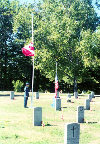 Plusieurs anciens combattant sont enterrés dans le cimetière dans lequel on trouve ce monument. Il y a plusieurs rangées de pierres tombales militaires traditionels derrière ce monument, qui est dédié à tous les anciens combattants. L’inscription a été composée par Neil Shaw, un ancien ORP de la filiale no 109 de la Légion royale canadienne.