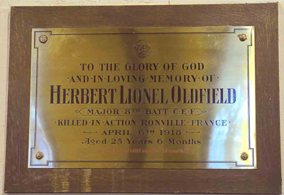 Plaque commémorative du Maj Herbert Lionel Oldfield
