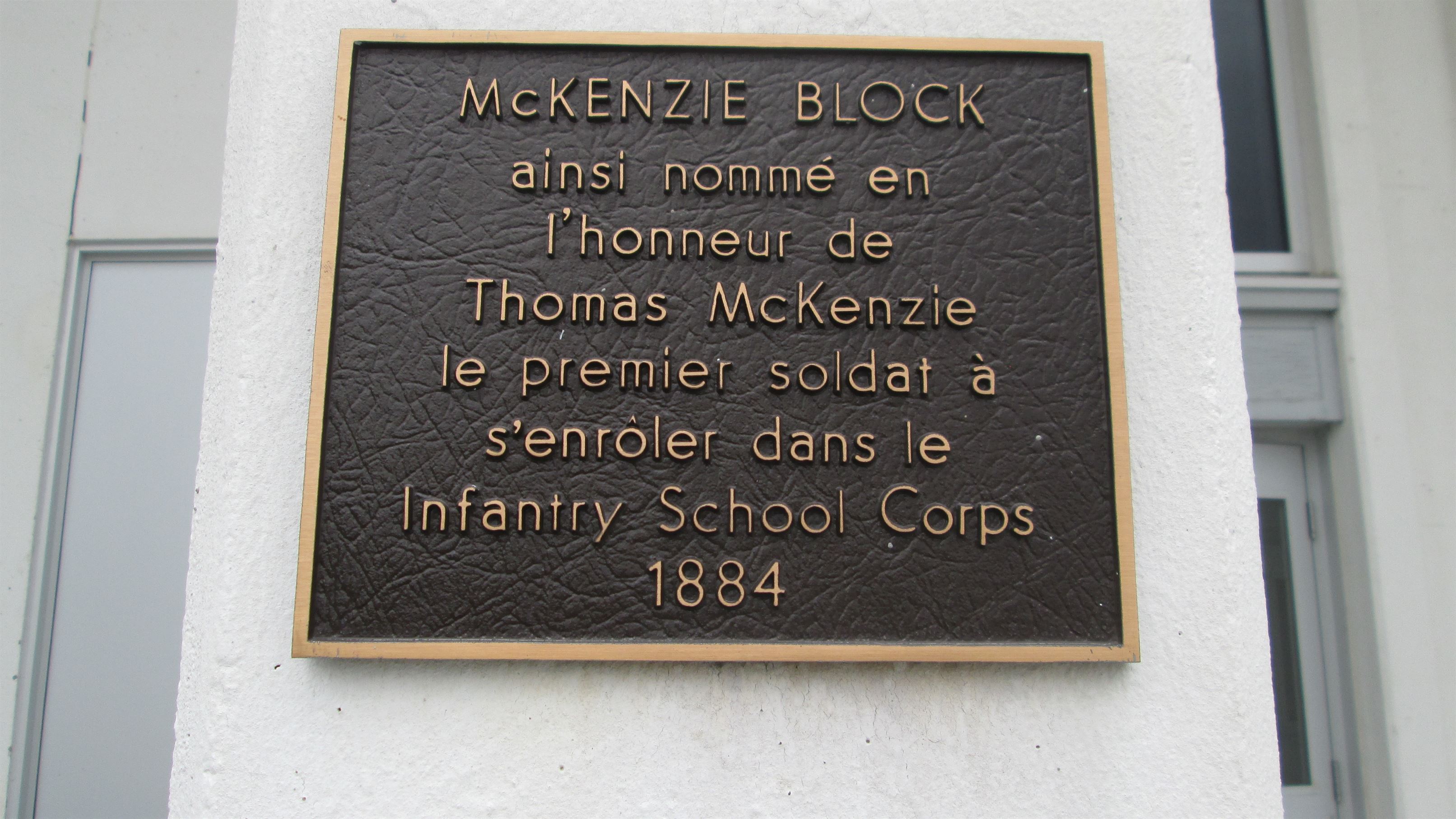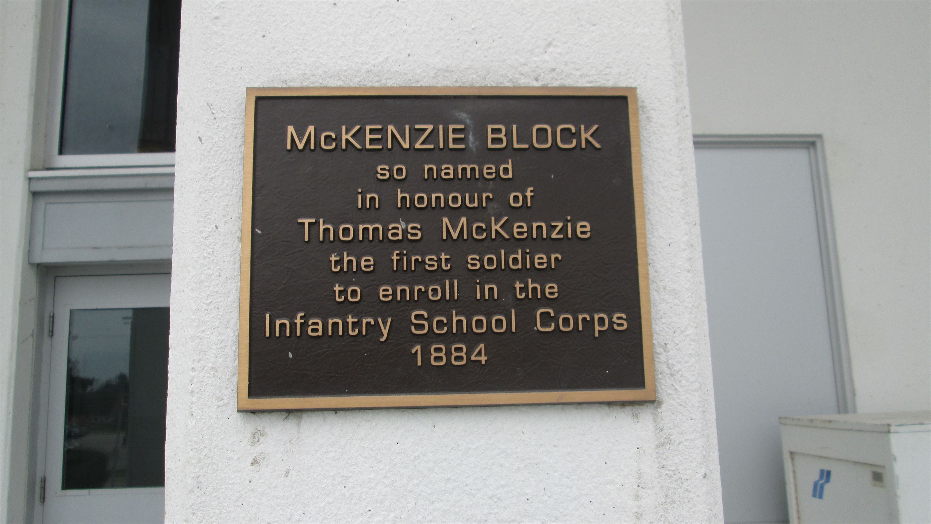 Le bâtiment McKenzie a été ainsi nommé en l’honneur de Thomas McKenzie, le premier soldat à s’enrôler dans l’Infantry School Corps et à rejoindre les forces d’infanterie permanentes du Canada.