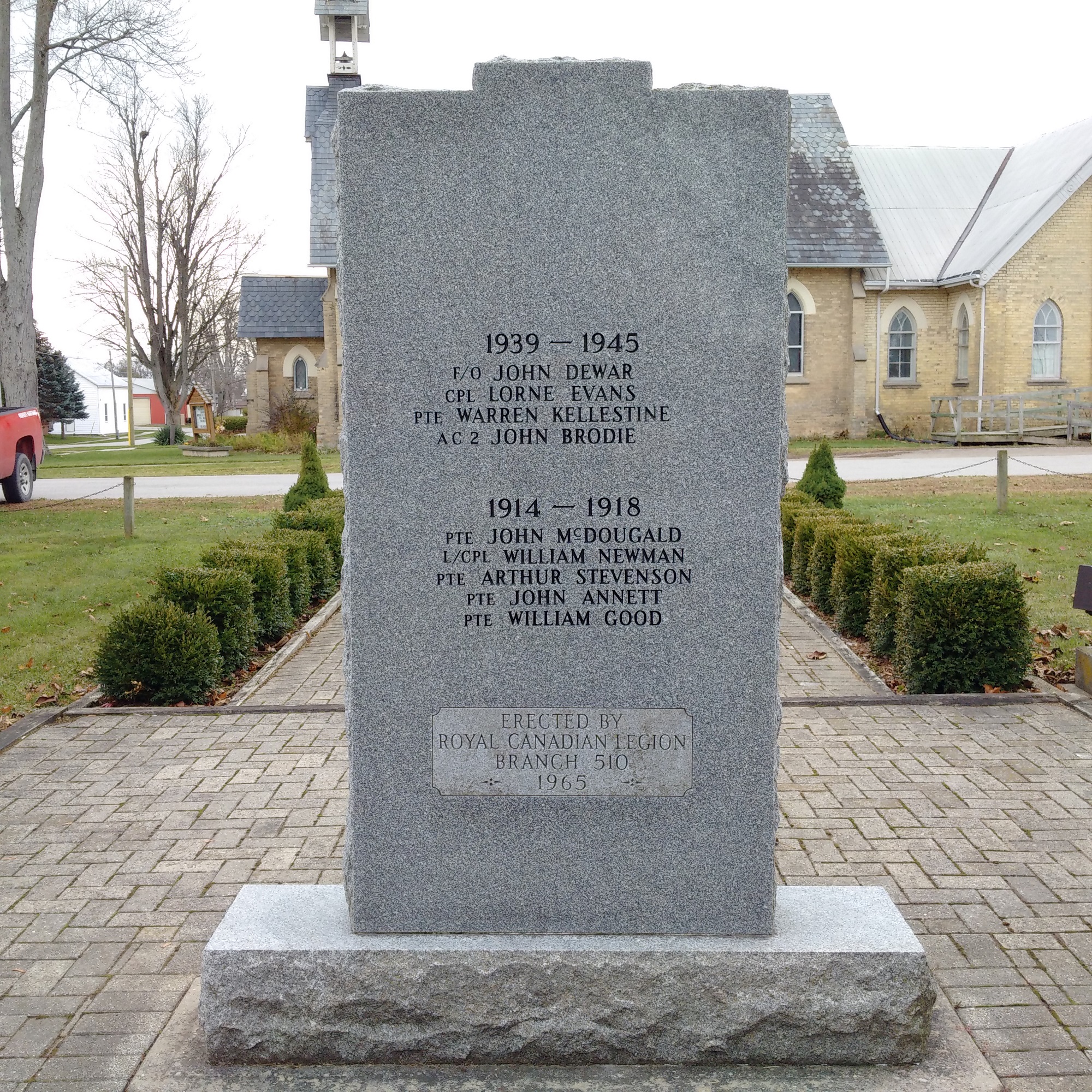 En 1964, la filiale 510 de la Légion royale canadienne (Melbourne) a acheté deux lots au cimetière de Longwood afin d’ériger un monument commémoratif en hommage à toutes les personnes qui ont péri au cours des conflits passés. Les travaux ont pris fin en 1965.