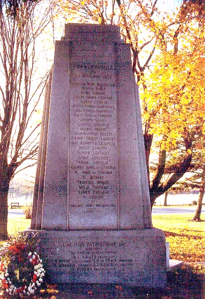 Ce mémorial est dédié à ceux qui ont été tués au cours de la bataille du 25 novembre 1837 contre les Anglais. Il a été érigé en 1937 et fait aux ateliers de Thuot et Denicourt, Iberville.