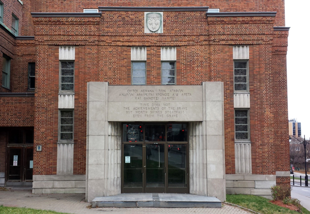 From that point on, the Memorial Hall became the focal point of remembrance activities. Similarly, a memorial archway in the Raymond Building at Macdonald Campus was constructed, and a funds left over from the project were designated for the maintenance of the Hall and pool as well as for an annual lecture at Macdonald.