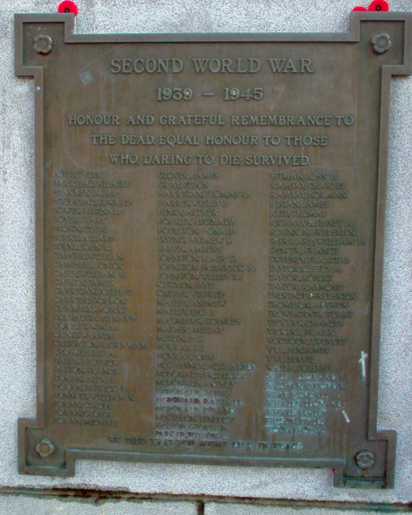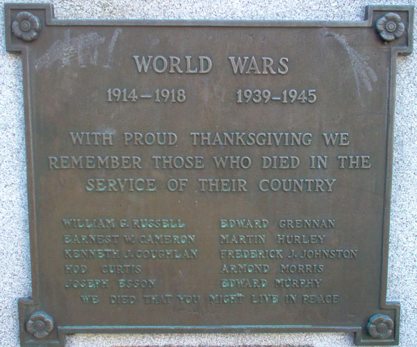 Ce mémorial aux anciens combattants de la localité et à ceux et celles des leurs qui ont péri lors des Première et Seconde Guerres mondiales et de la guerre de Corée a été érigé par la filiale no 10 de la Légion royale canadienne.