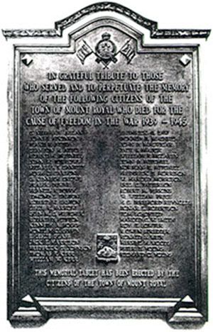 EN MEMOIRE DE CEUX MORTS A LA GUERRE. THIS MONUMENT WAS UNVEILED BY FIELD MARSHALL THE VISCOUNT ALEXANDER OF TUNIS GOVERNOR GENERAL OF CANADA