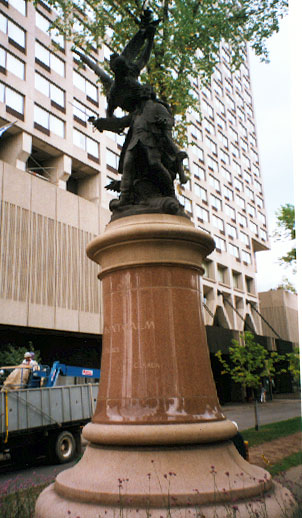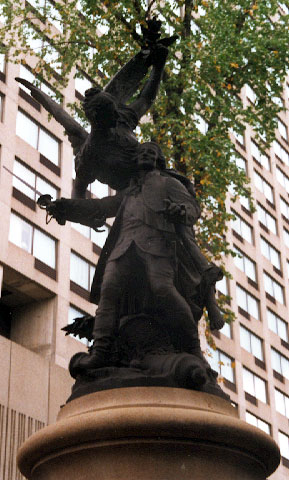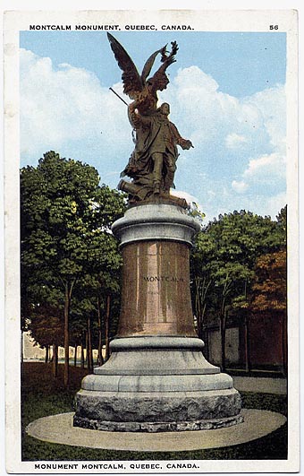 M. Gaston Bouzanquet est l'auteur du projet né en France à l'été 1907. La France et le Canada se sont unis afin de réaliser le projet d'élever deux monuments à Montcalm, l'un à Vauvert, l'autre à Québec. Des souscriptions furent effectuées pour les deux monuments. Quant il y eut assez d'argent, la France fit faire les deux statues et en envoya une à Québec. Ici, le piédestal fut construit grâce aux contributions locales. M. Paul Chabert, qui a conçu les plans et dessins du piédestal, en France, les a offerts gratuitement à Québec. M. Eugène Taché, de Québec, a apporté quelques modifications aux dessins (a fait des fleurs de lys plutôt que les motifs du monument français), a fait les devis pour la construction du piédestal et a surveillé l'exécution des travaux, le tout gracieusement. M. J.-Geo. Piché, entrepreneur de Montréal, a eu le contrat pour la construction du piédestal à Québec. Le monument fut dévoilé le 16 octobre 1911 par M. François Langelier, lieutenant-gouverneur de la province de Québec.